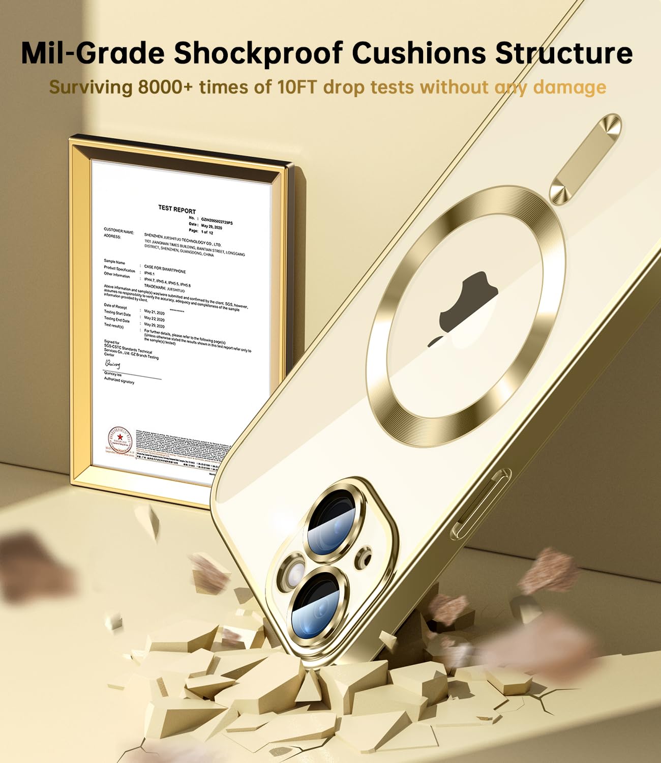 Q: How does this case protect my iPhone from drops?A: The Waldeng case is certified by MiL-Grade standards and has passed over 10,000 drop tests from 10FT, featuring a 360° shock-proof cushioning structure for superior impact absorption.