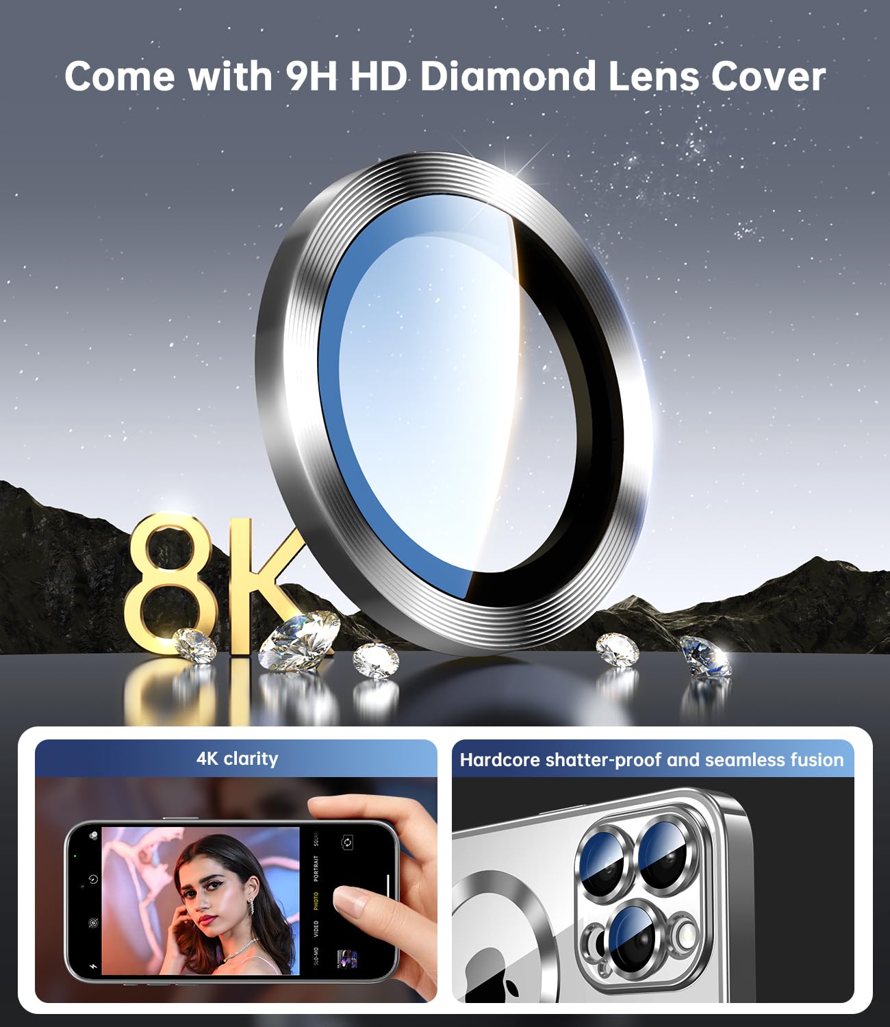 Q: What type of protection does this case provide for the camera lens?A: The case features a 9H HD diamond camera cover that offers enhanced protection with raised bezels, preventing scratches and damage while ensuring that photo quality is not compromised.