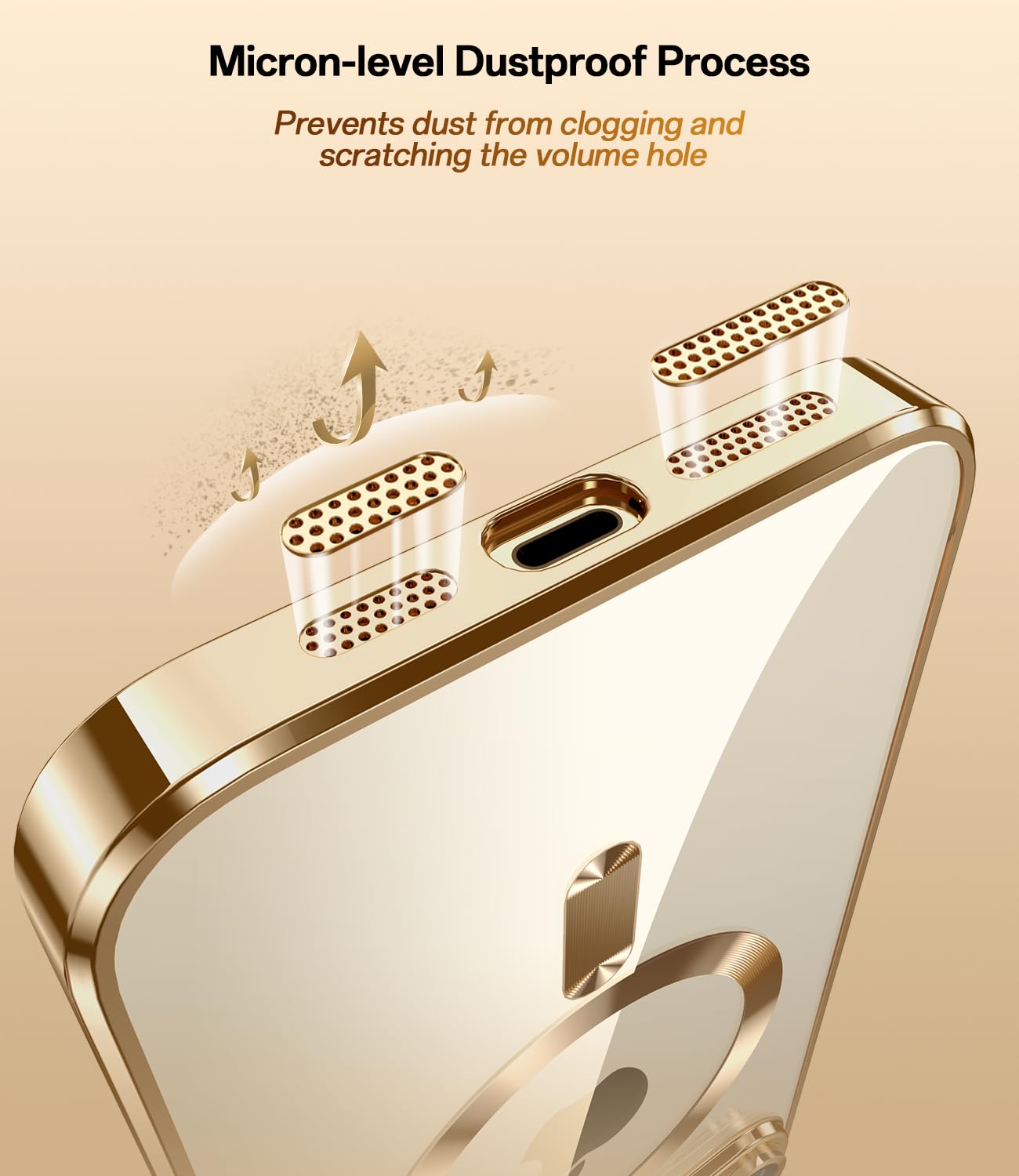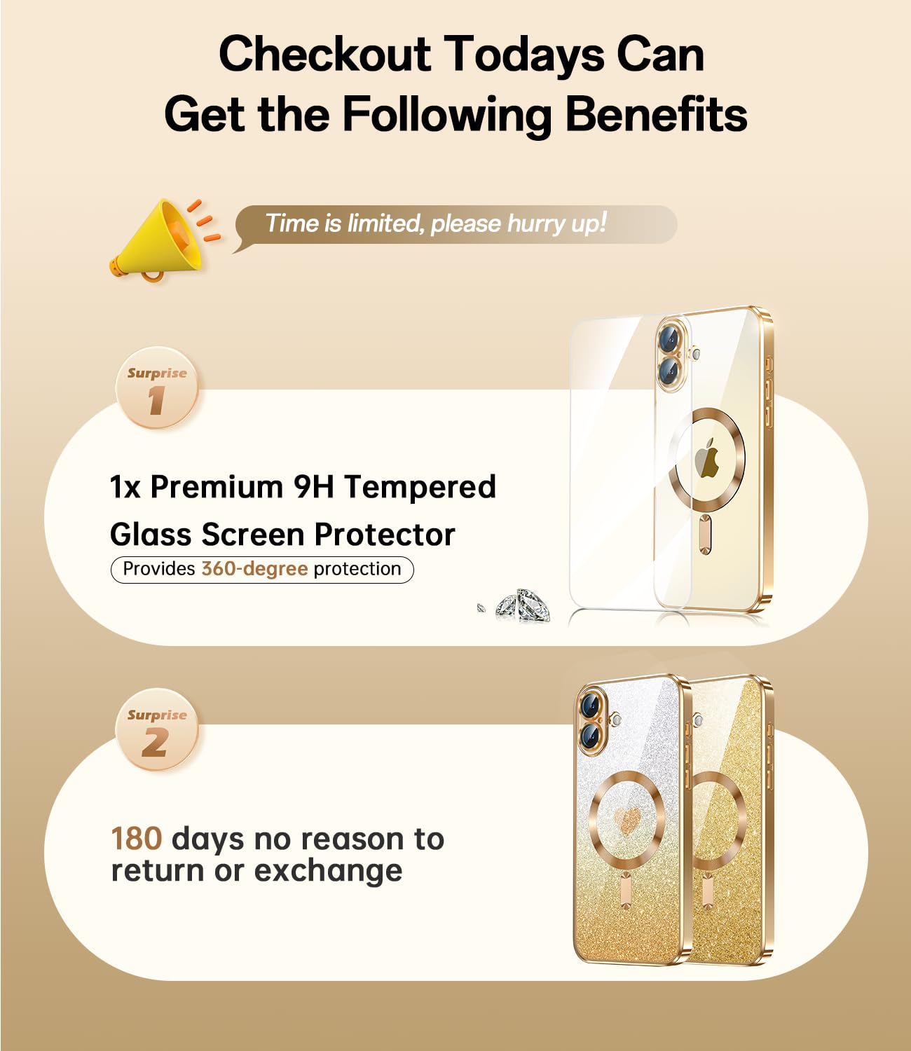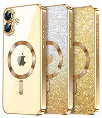 Waldeng For Iphone 16 Plus Case With 1X Screen Protector, [Seamless Work With Magsafe] [Interchangeable Glitter Card], With Integrated Lens Protection Stylish Women Case For Iphone 16 Plus, Gold
