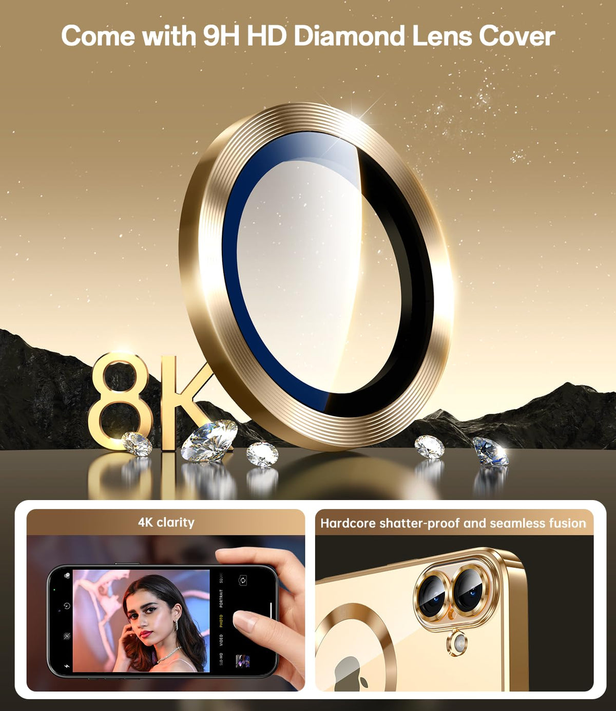 Q: How does the camera protection work with this case?A: This case includes a 9H diamond camera cover made from advanced glass, ensuring full protection for your phone's camera without compromising photo quality. Raised bezels help prevent scratches, further extending the life of your camera.