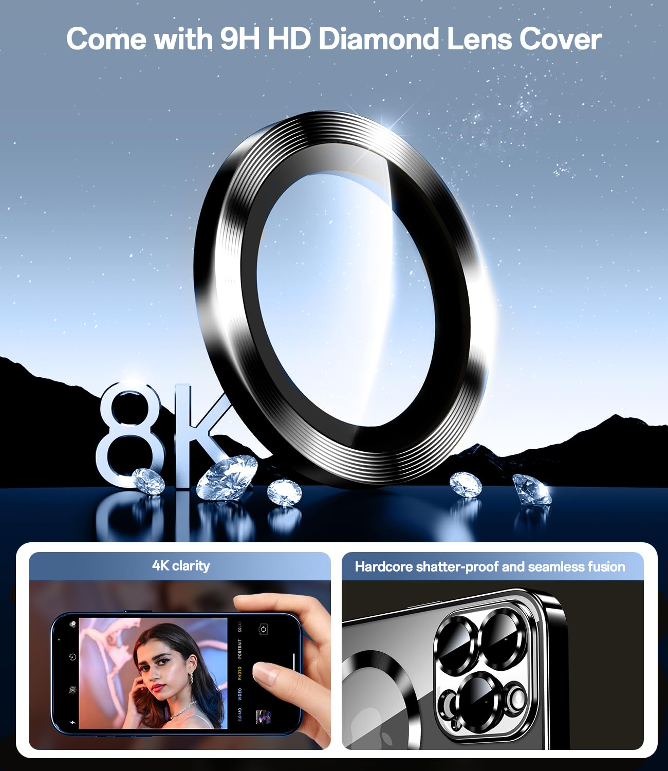 Q: How does the lens protection work on this case?A: The case features a 9H Diamond Camera Cover made from advanced glass, ensuring full camera protection without compromising photo quality, while raised bezels prevent scratches.