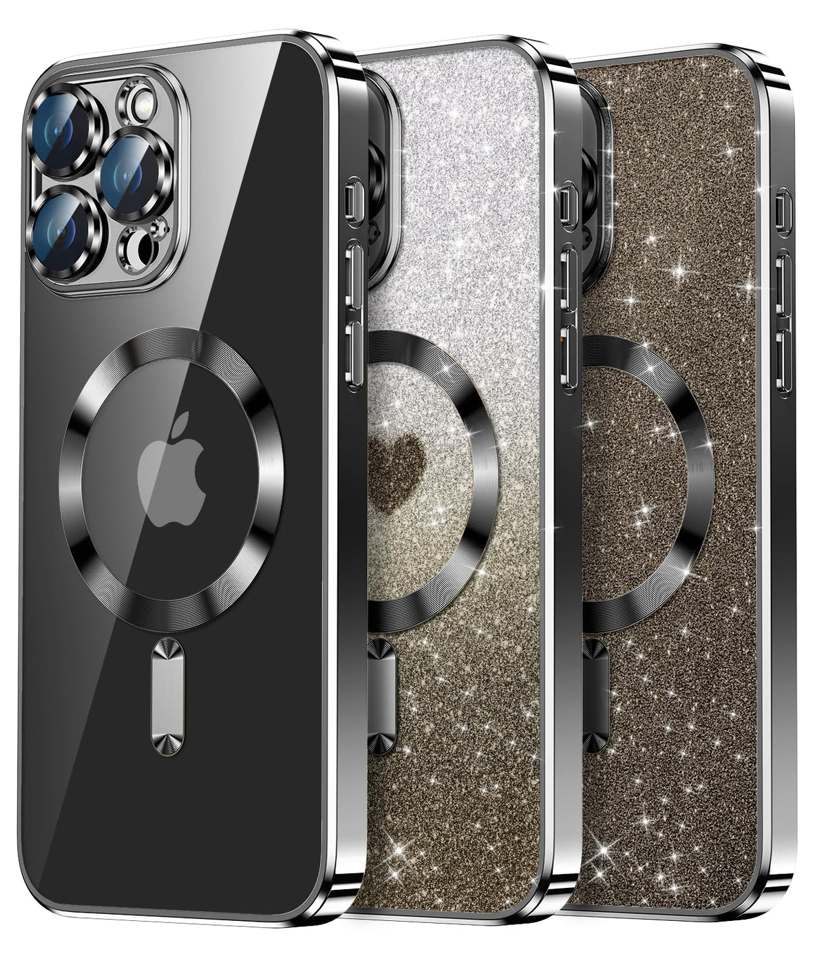 Waldeng For Iphone 16 Pro Case With 1X Screen Protector, [Seamless Work With Magsafe] [Interchangeable Glitter Card], With Integrated Lens Protection Stylish Women Girl Case For Iphone 16 Pro, Black