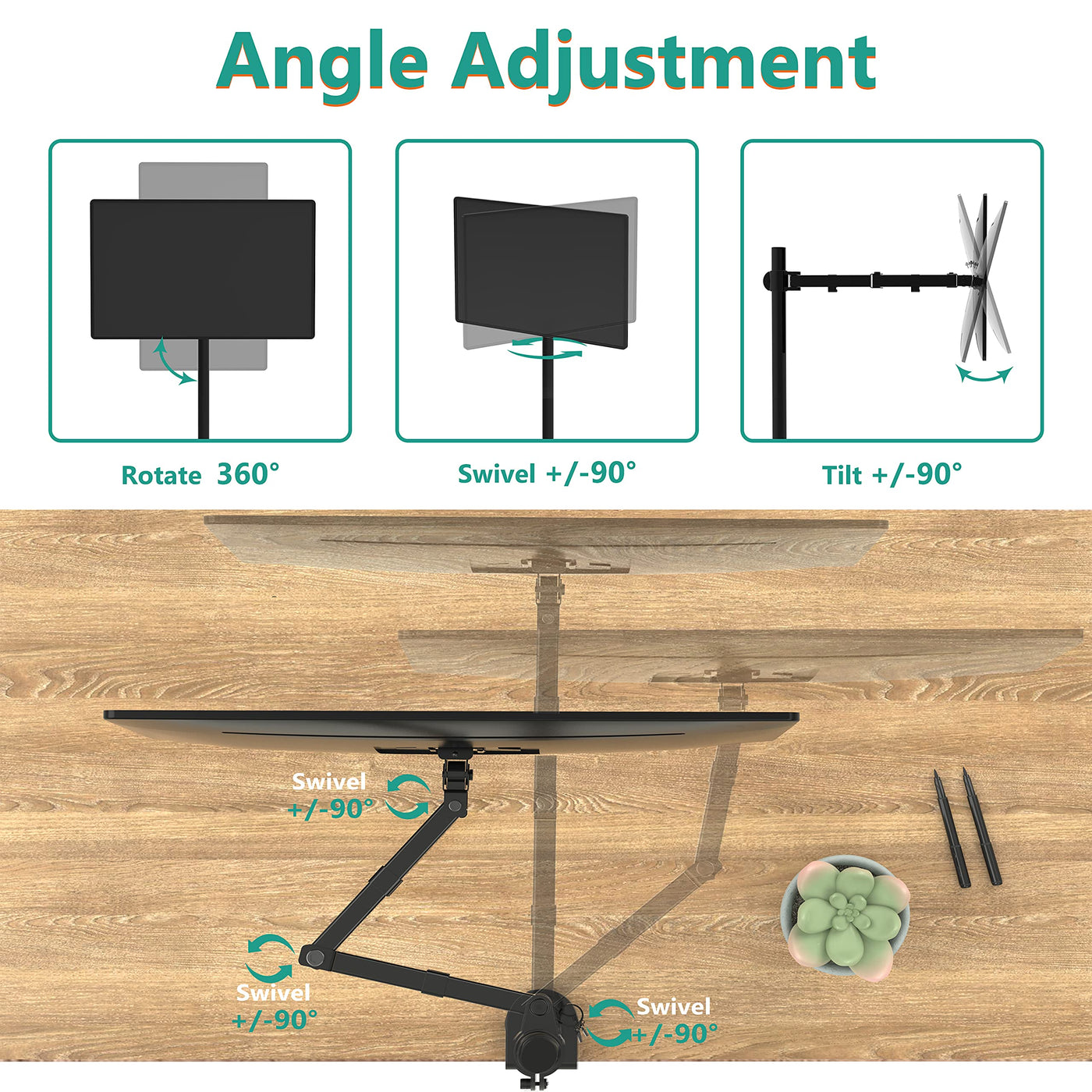 Application: Fits most flat panel monitor up to 32� and supports weight up to 22lbs. Mount plates detachable and height adjustable for mounting holes 75x75mm and 100x100mm. | Multiple Options: Two-stage locking system C-Clamp and 3.5� diameter Grommet-Base, both systems applied to 3� thick desk. | Multiple Adjustment: The high-grade arms extend and retract, +/-90� tilt and swivel to change reading angles, and 360� rotate from landscape to portrait mode. | Double Benefits: Monitor arm is easily adjustable on the 31.5� height pole. Double efficiency and productivity by opening up desk space allow working in a more comfortable, ergonomically correct position to reduce neck and eye strain. | Package Includes: 1 x WALI Extra Tall Single Monitor Mount (Black), 1 x Mounting Hardware Kit, 1 x User Manual, experienced and friendly US based customer support available to assist 7 days a week.