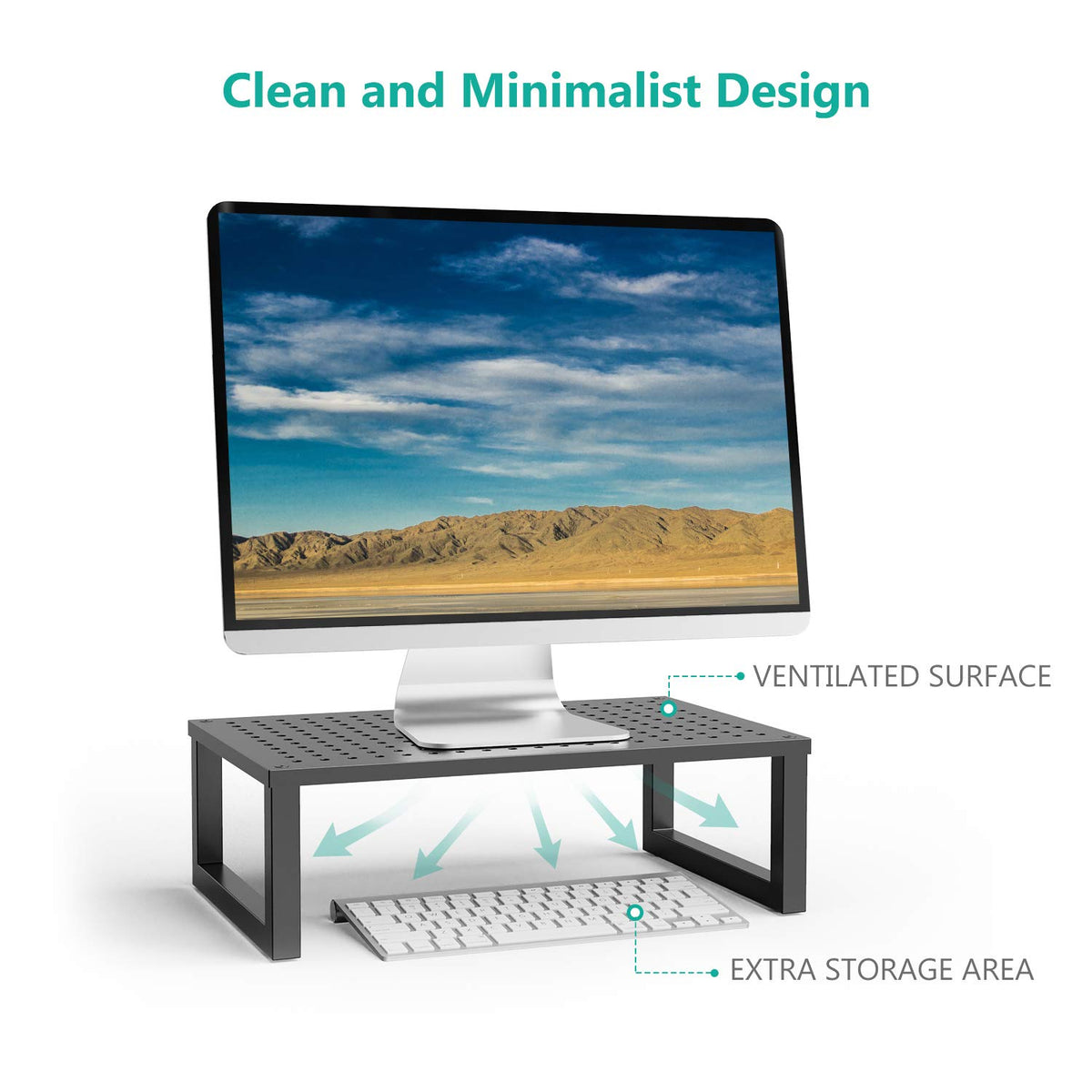 WALI Monitor Stand Riser, Desktop Printer Monitor Stand Riser, with Vented Metal Platform and Underneath Storage (STT004), 1 Pack, Black