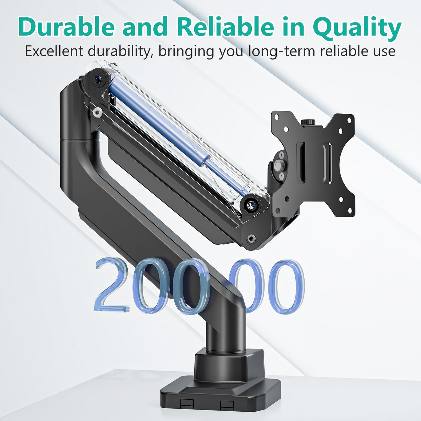 Compatibility: Fits Monitors up to 35' and 33 lbs. The two-stage locking system is compatibility for 0.39'-1.77' thick desk for both C-clamp and Grommet Base | Adjust: Easily with quick detach Mounting plate and hide messy wires with built-in cable management | Sturdy Construction: The high-grade material gas spring arm can be extended and retracted, +45�/-45� tilt and +90�/-90� swivel to change reading angles, and 180� rotate from landscape to portrait mode | Double Benefits: Double efficiency and productivity by opening up desk space allowing a new range of adaptable positions for your displays, ergonomically correct position to reduce neck and eye strain | Package includes: 1 x WALI Gas Spring Single Monitor Desk Mount (Black), Mounting Hardware Kit, User Manual, experienced and friendly US based customer support available to assist 7 days a week