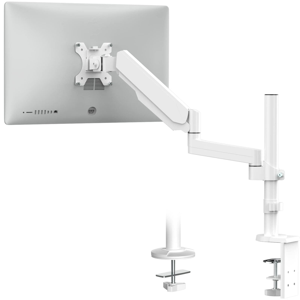 WALI Single Monitor Mount, Adjustable Gas Spring Arm Desk Mount for Screen up to 32 inch, 17.6lbs Weight Capacity, Mounting Pattern 75 x 75mm or 100 x 100mm (GSDM001W), White
