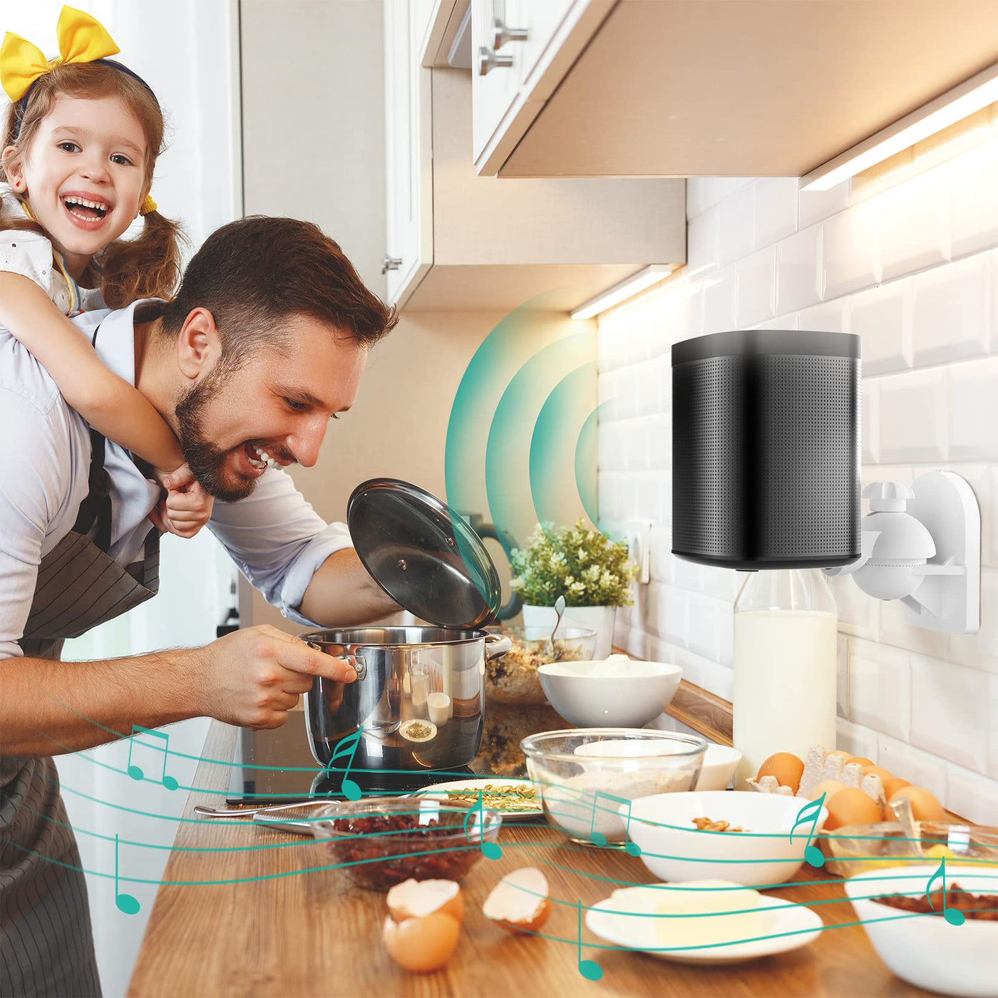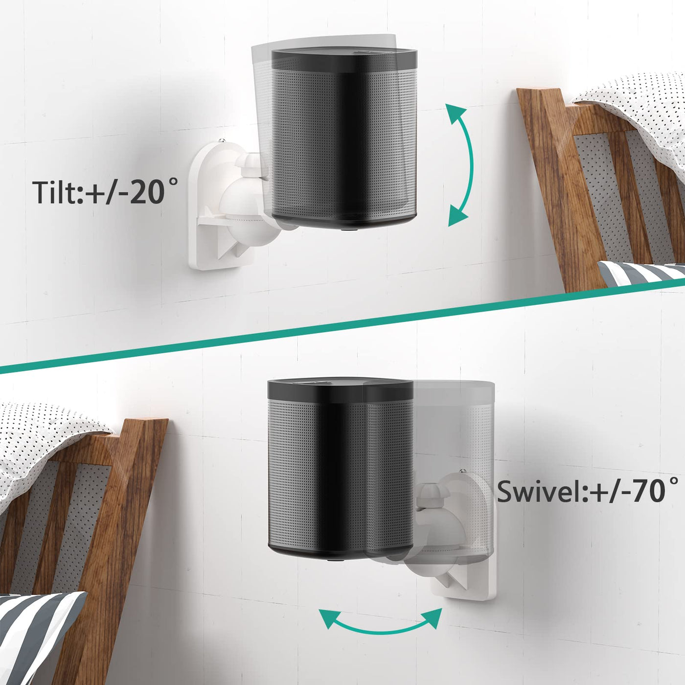 Compatibility: Bookshelf speaker wall mount brackets can mount on studs, concrete or brick/stone walls. Max. Capacity: 7.7 lbs (3.5kg). | Fully Adjustable: Adjustable Tilt up and down 20 degrees, Swivel left and right 70 degrees. | Design: The modern knob design is complemented by a sleek reinforced black coat for a contemporary appearance while immersing in optimum listening experience. | Durability: Metal inner construction ensures sturdy mount to wall. | Package Includes: WALI Speaker Wall Mount Brackets(White) x 4, Mounting Hardware Kit, User Manual, experienced and friendly US based customer support available to assist 7 days a week.