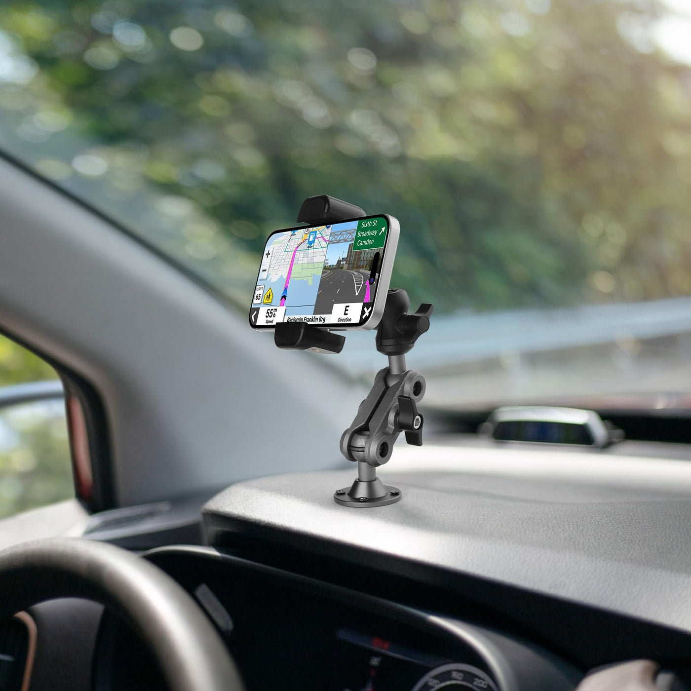 Q: Is this phone holder suitable for all types of vehicles?A: Yes, this phone holder is designed for use in various vehicles, including cars, trucks, vans, and boats. Its heavy-duty base ensures a secure fit.