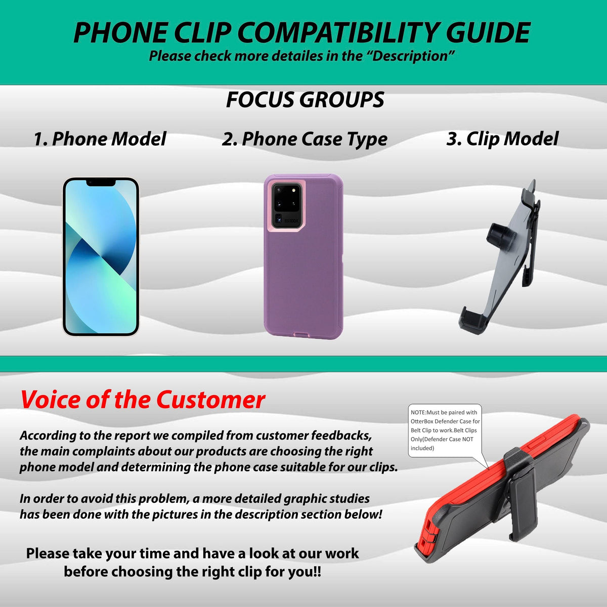 Q: Is this belt clip compatible with any phone cases?A: The WallSkiN Replacement Belt Clip is specifically designed to be compatible only with the OtterBox Defender Series case for the Samsung Galaxy S10e. It will not work with other phone cases.