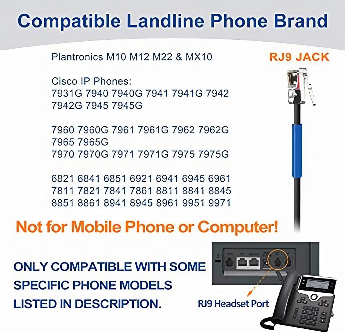 Not For Cell Phones And Computers : Only Compatible With M10, M12, M22 & Mx10 Amplifiers Or Some Specific Cisco Ip Phone Models: Cts 500 Cisco Ip 6821,6841, 6851,6921, 6941, 6945, 6961, 7811, 7821, 7841, 7861 Cisco Ip 7931G, 7940, 7940G, 7941, 7941G, 7942, 7942G, 7945, 7945G Cisco Ip 7960, 7960G, 7961, 7961G, 7962, 7962G, 7965, 7965G Cisco Ip 7970, 7970G, 7971, 7971G, 7975, 7975G Cisco Ip 8811, 8841, 8845, 8851, 8861, 8941, 8945, 8961, 9951, 9971. Crystal Clear Chat: Wideband Sound Rj9 Telephone Headset With Microphone Works For Cisco Landline Phones Enables Excellent Sound Quality For Natural Listening Experience, Features Noise Canceling Microphone To Reduce Background Noise, Acoustic Shock Protection Circuit To Protect Your Hearing. Most Comfort Headset: Super Lightweight Wired Hands-Free Rj9 Office Phone Headset Works For Cisco Desk Phones With Adjustable Headband To Fit All Head Sizes, High Quality And Soft Leatherette Ear Cushion Enhance All-Day Wearing Comfort. Professional Mic Mute / Volume Control Built In. Ultra Durable: Precision Design, Quality Plastics, Unibody Headband Construction, Superior Quality Microphone Makes This Call Center Phone Headset With Rj9 Jack Sturdier And More Durable. Compete With Heavy Duty Telephone Headphone For Call Center, Office, Home, Telemarketing, Business, Phone Sales, Insurance, School, Hospitals, Banks, It Department, Customer Services, Consulting, Conference Calls. 1-Year Warranty & Compatibility Notes: 45 Days Money Back Guarantee & 1 Year Warranty. Only Compatible With Some Specific Phone Models Listed In Description (Include But Not Limited). Not Compatible With Cisco Spa Phone Series. For Other Phones, Pls Contact Us For Compatibility Guide Or Advice.