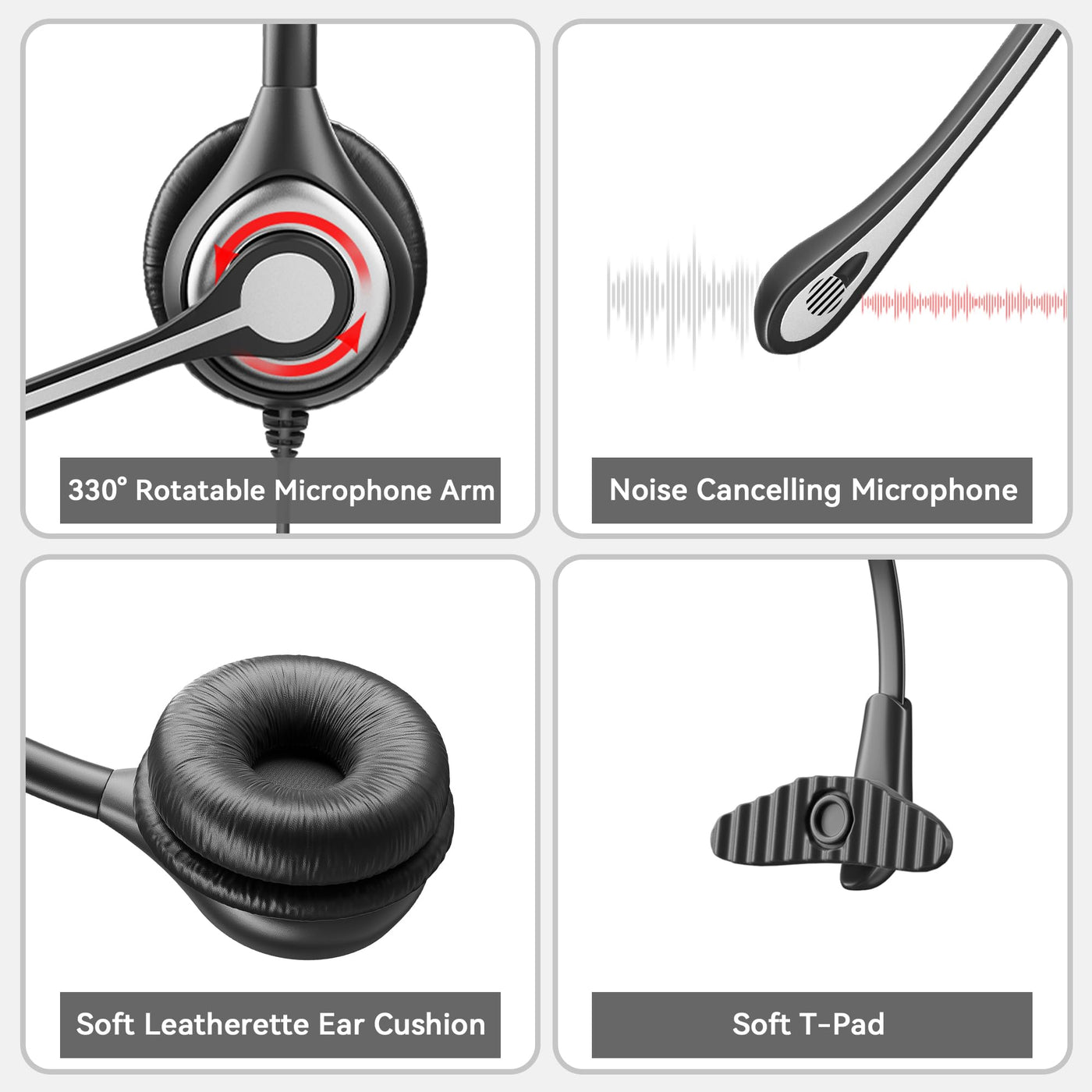 Wantek Corded Telephone Headset Mono W/Noise Canceling Mic + Quick Disconnect
