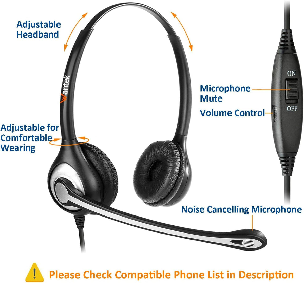 Wantek Phone Headset 2.5Mm With Noise Canceling Mic & Volume Control Ultra Comfort Telephone Headset For Panasonic At&T Gigaset