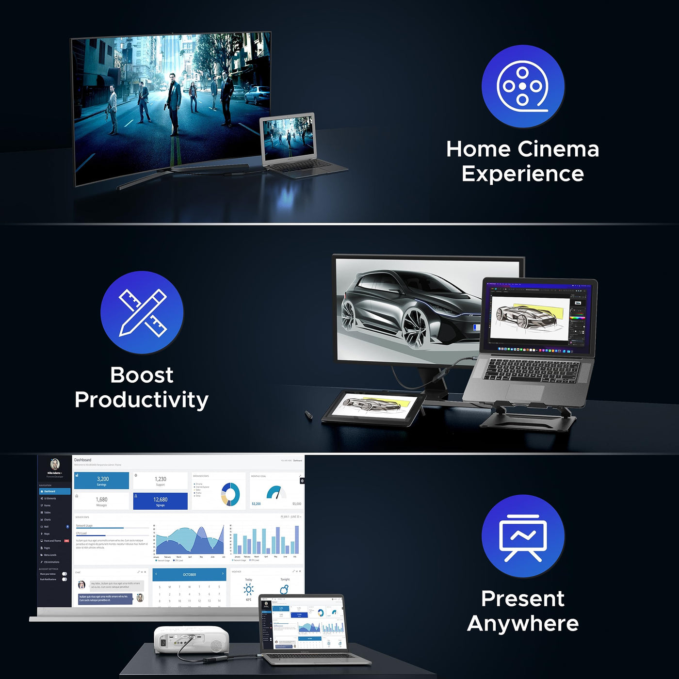 Warrky 4K Mini Displayport To Hdmi Adapter 2 Pack, [Uhd, Gold Plated Plug, Aluminum Case]Thunderbolt To Hdmi Converter Compatibl