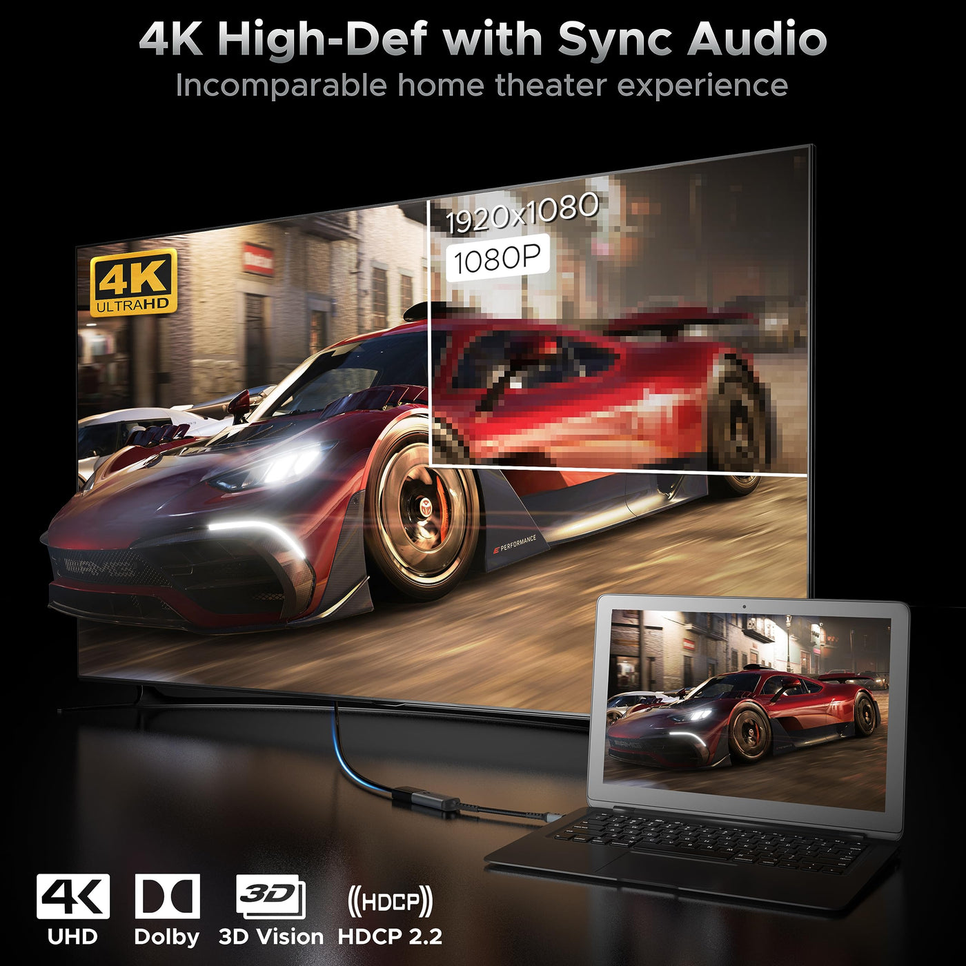Warrky 4K Mini Displayport To Hdmi Adapter, [Uhd, Gold Plated Plug, Aluminum Case, Super Slim] Thunderbolt To Hdmi Converter Compatible For Macbook Air/Pro, Surface Pro/Dock, Monitor/Projector