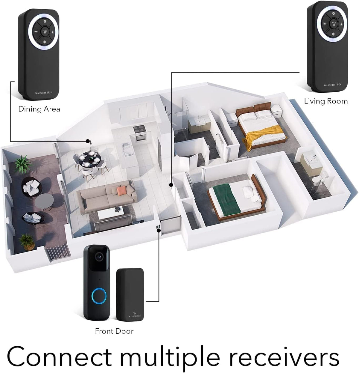 Q: Can I use multiple receivers with the Wasserstein Doorbell Chime?A: Yes, you can connect up to 5 receivers to one transmitter with the Wasserstein Doorbell Chime, making it ideal for larger homes.