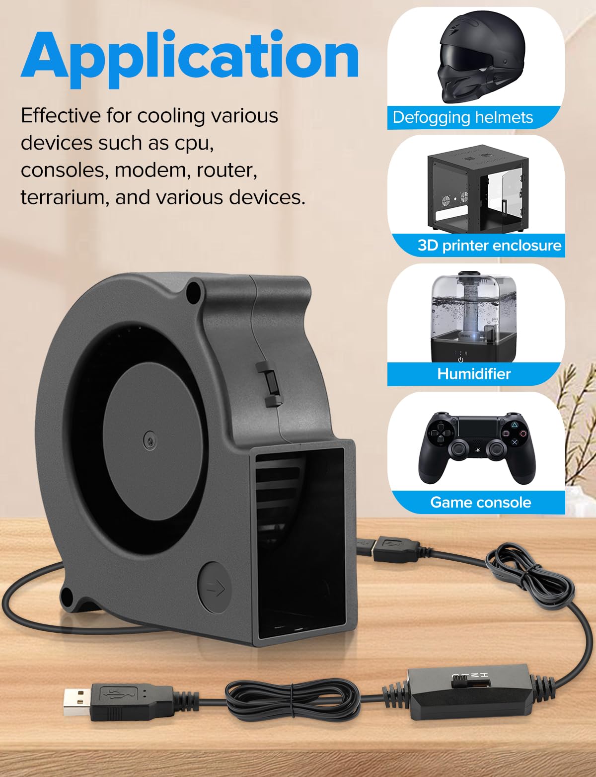 Wathai 75Mm X 30Mm Usb Blower Fan Turbine Centrifugal 5V For Diy Computer Case, Home Theater Receiver, 3D Printers, Electronics