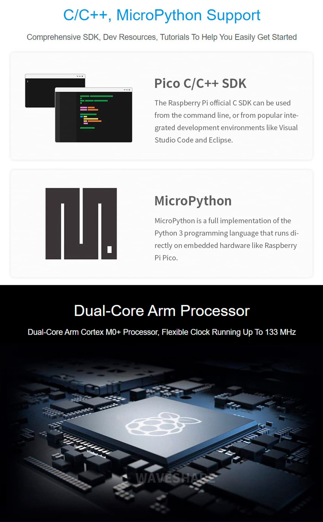 Q: Is the Waveshare RP2040 board compatible with Raspberry Pi projects?A: Yes, the Waveshare RP2040 board is designed based on the Raspberry Pi RP2040 microcontroller chip, making it highly compatible with Raspberry Pi projects and suitable for a variety of applications.