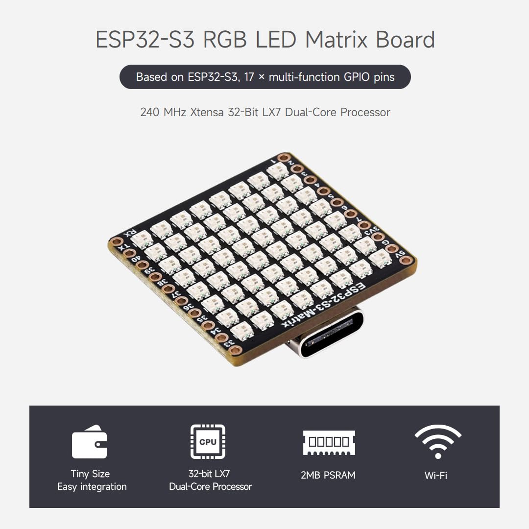 Waveshare Esp32 S3 Matrix Development Board, Onboard 8 8 Rgb Led Matrix And Qmi8658C Attitude Sensor, Supports Wi Fi And Blueto