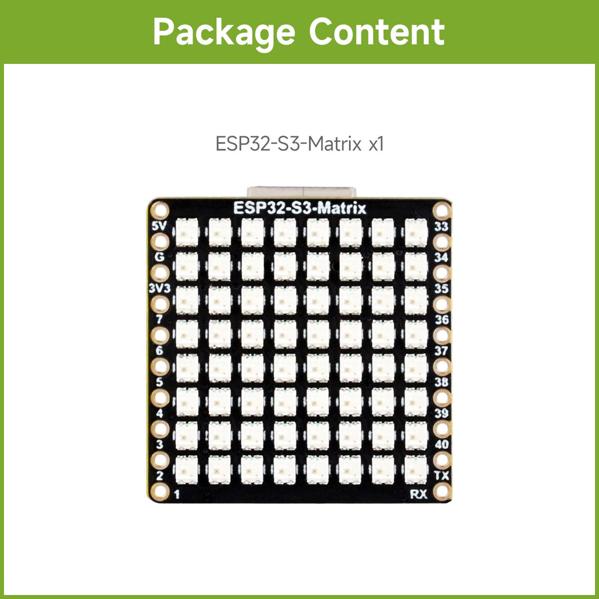 Q: How does the ESP32-S3-Matrix help with power management?A: The Waveshare ESP32-S3-Matrix Development Board supports multiple low-power operating states, enabling you to adjust the balance between communication distance, data rate, and power consumption, which is ideal for various application scenarios.