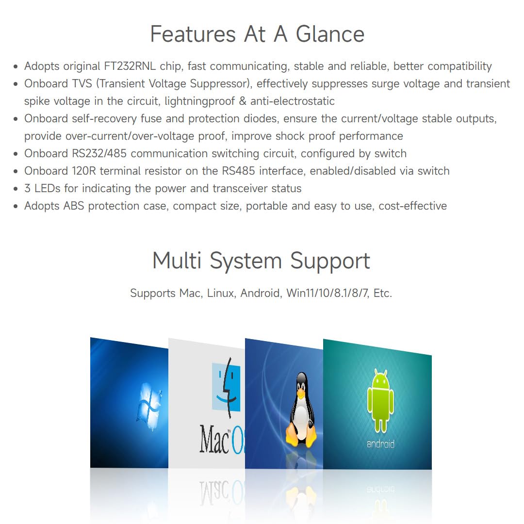 Waveshare Usb To Rs232/485 Serial Converter, Onboard Original Ft232Rnl Chip, Features More Stable Transmission, Suitable For Mul