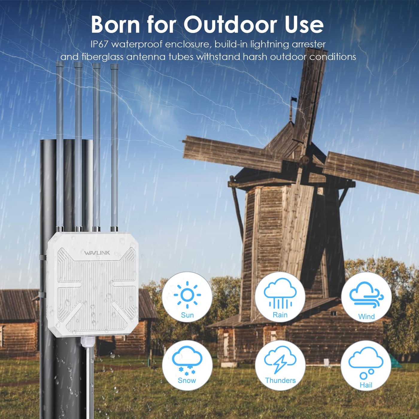 Wavlink Ax1800 Outdoor Wifi 6 Extender, Long Range Wifi Repeater Dual Band, Weatherproof, Active/Passive Poe Powered, Access Poi