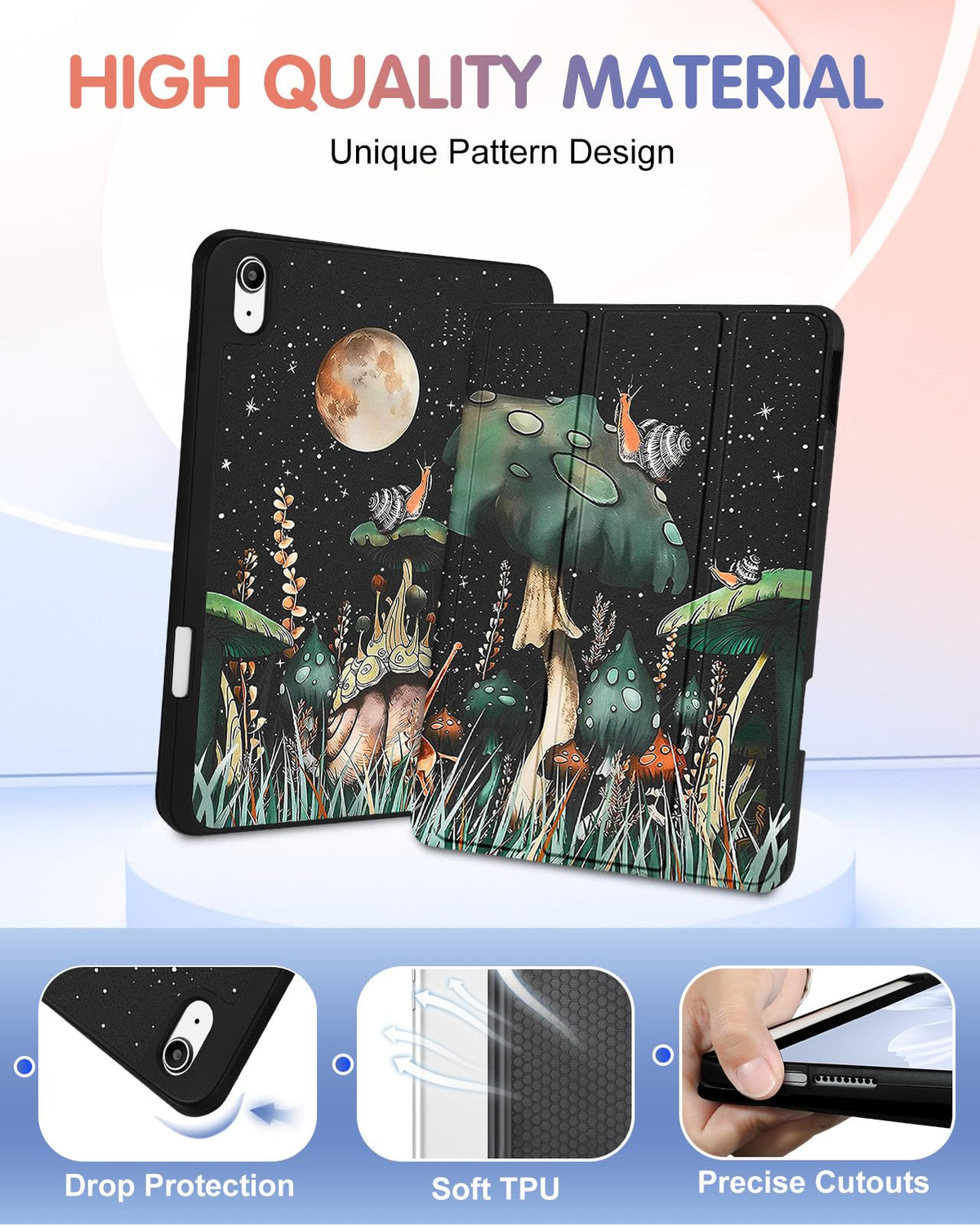 Wazzasoft For Apple Ipad 10Th Generation Case 10.9 Inch Cute Women Girls Folio Cover Eens Mushroom Design Cool Unique With Penci