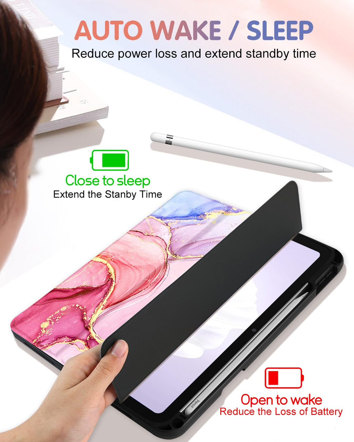 Wazzasoft For Apple Ipad 10Th Generation Case 10.9 Inch Cute Women Girls Folio Cover Girly Teens Marble Design Unique Pretty Pen