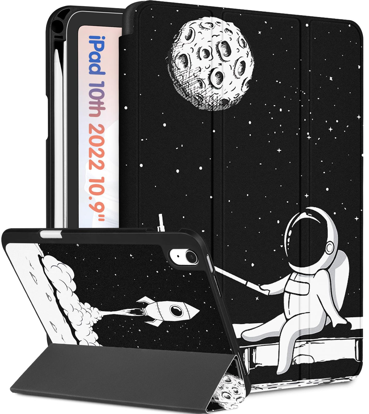Wazzasoft For Apple Ipad 10Th Generation Case 10.9 Inch Cute Women Girls Kids Folio Cover Teens Astronaut Design Unique With Pen