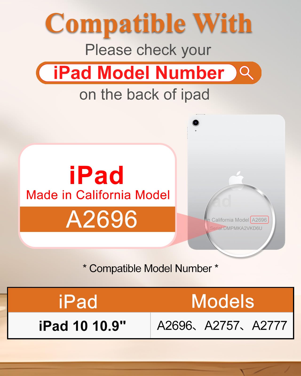 Device-Specific Design: Only For 10.9 Inch For Ipad Case 10Th Generation, Ensuring A Perfect Fit And Full Functionality.On-The-Go Typing: The Detachable Bluetooth Keyboard Magnetically Attaches For Quick And Easy Typing Sessions. Its Responsive Keys And Bluetooth Connectivity Make It Perfect For Work Or Play.Never Lose Your Pencil Again: The Dedicated Pencil Slot Keeps Your Stylus Secure And Readily Available, Eliminating The Hassle Of Searching For It In Your Bag.Durable Protection:Our For Ipad 10Th Generation Keyboard Case Offers Full-Edge Protection To Safeguard Your Ipad From Accidental Drops And Bumps, Ensuring It Remains In Pristine Condition.Elegant And Stylish:With Its Sleek Design And Multiple Color Options, This 10Th Gen For Ipad Case With Keyboard Is Not Only Practical But Also Visually Appealing, Making It An Ideal Choice For Special Occasions.