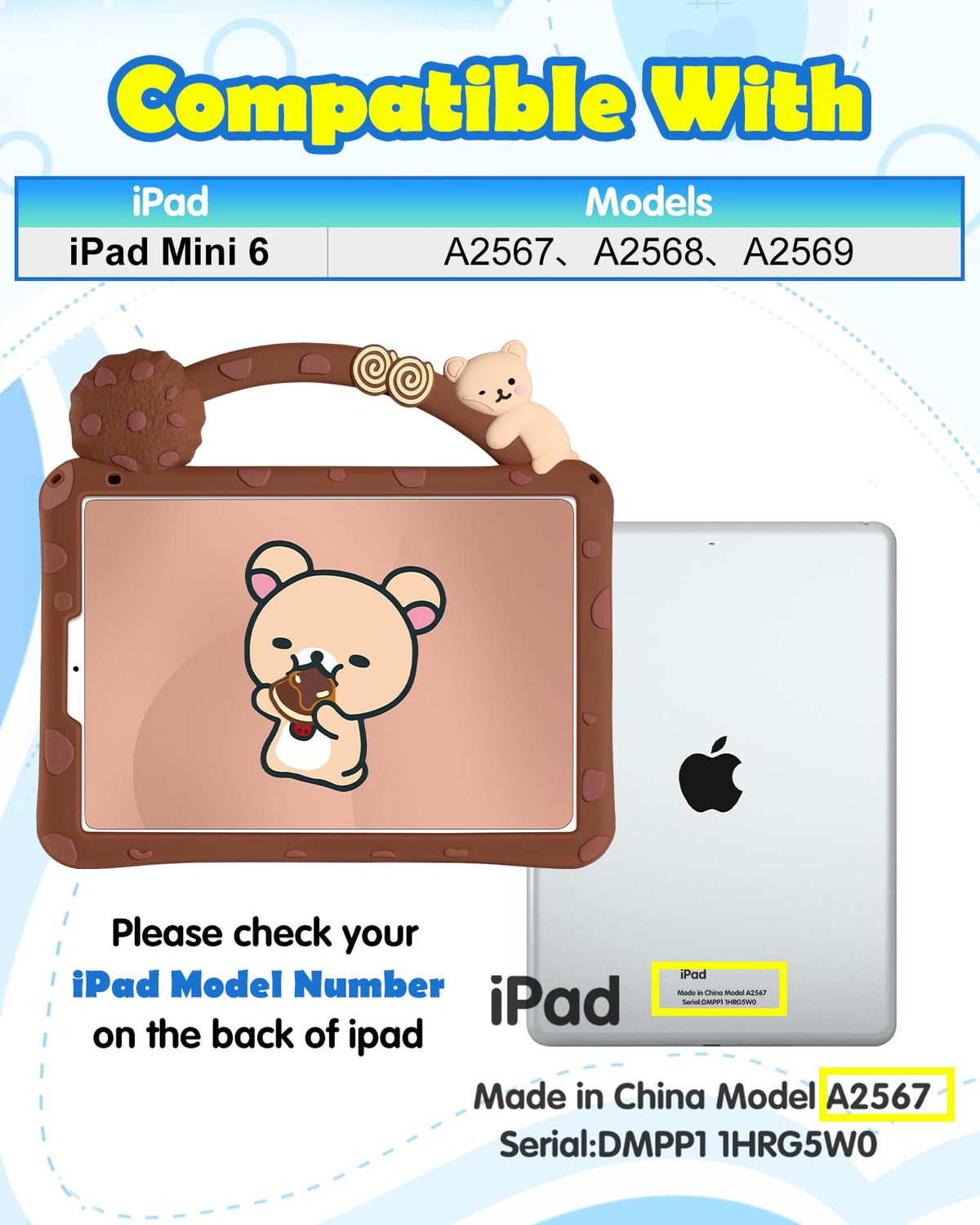 Wazzasoft For Ipad Mini 6 Case 8.3 Inch Girls Boys Cute Kawaii Cover 3D Cartoon Girly Women Soft Silicone With Rotating Handle S