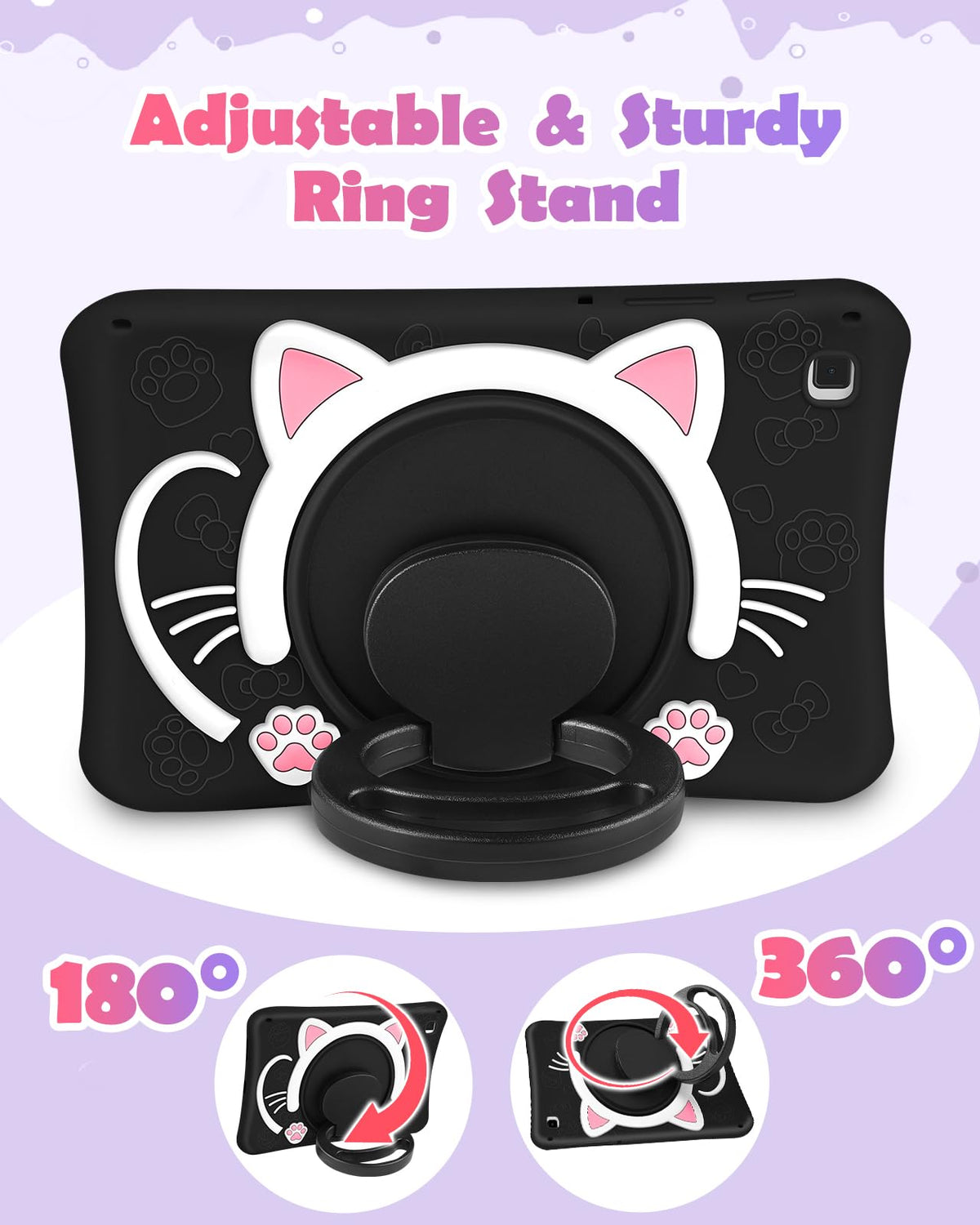 Wazzasoft For Samsung Galaxy Tab S6 Lite 10.4 Case Girls Cute Black Cat Cover Girly Kawaii Cartoon Women Kitten With Rotating