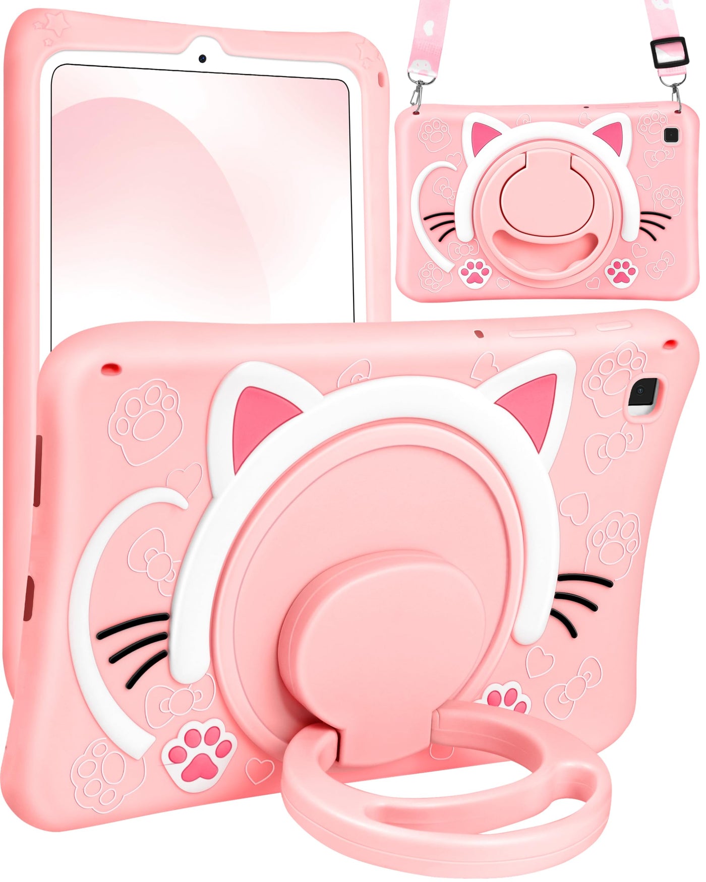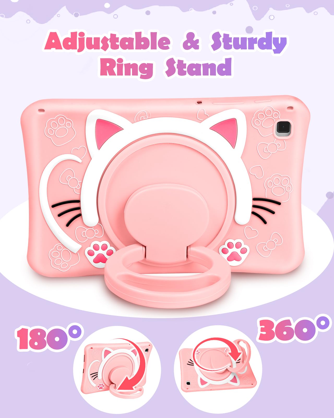Wazzasoft For Samsung Galaxy Tab S6 Lite 10.4 Case Girls Cute Cat Kawaii Cover Girly 3D Cartoon Women Kitten With Rotating Ha