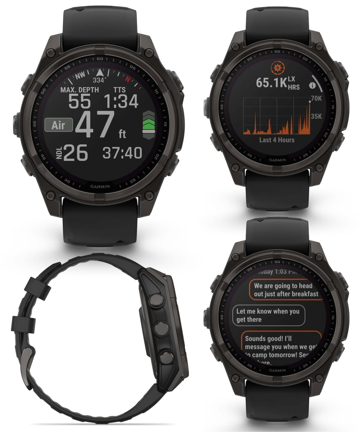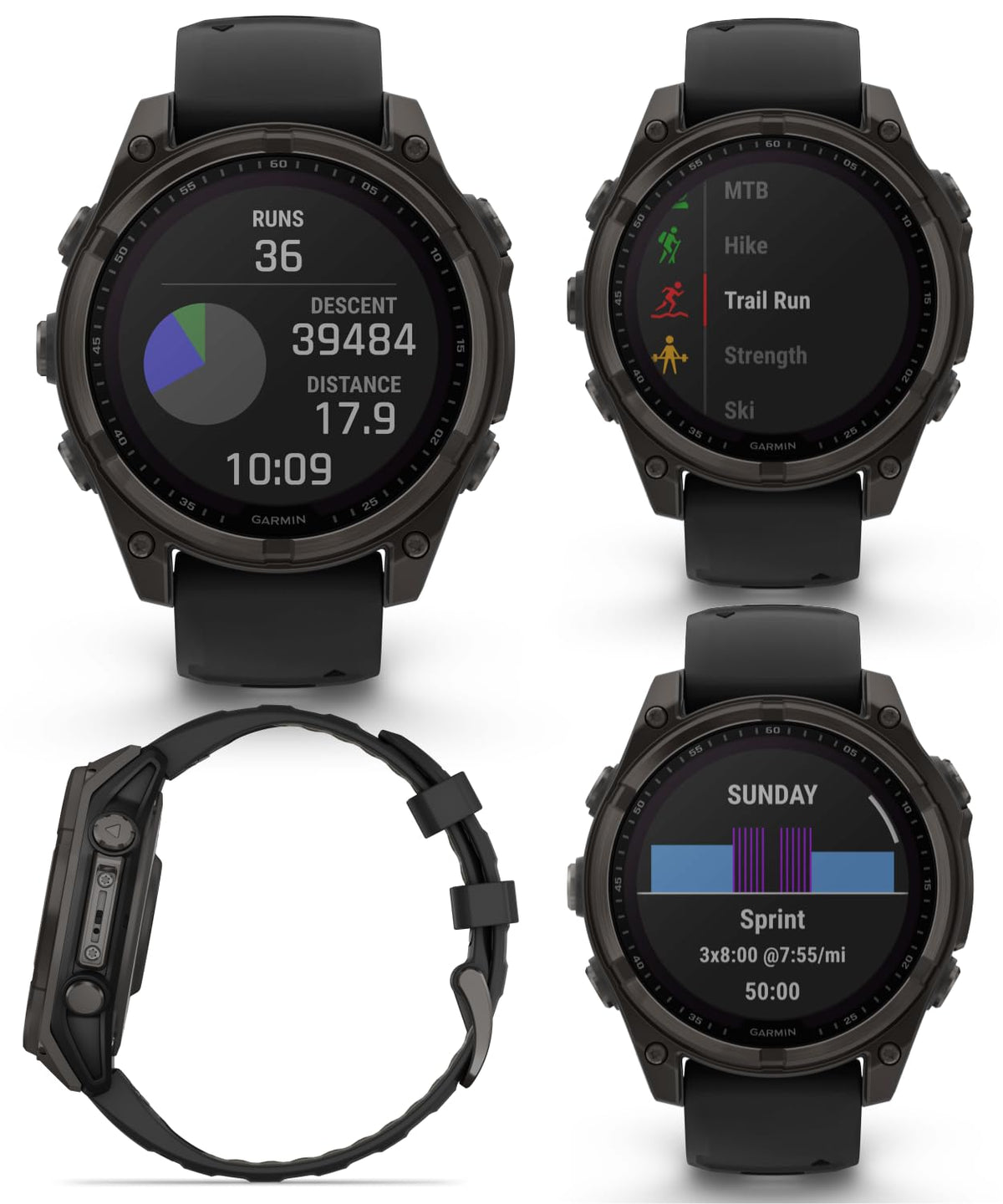 Be Limitless. The Fenix 8 Multisport Gps Smartwatch Is Built For Serious Athletes And Outdoor Adventurers Who Want To Push Beyond Their Limits. It Features A 1.3 Solar Charged Display With Scratch-Resistant Sapphire Lens, Durable Titanium Bezel And Powerful Built-In Led Flashlight For After-Dark Visibility. A Built-In Speaker And Mic Enable You To Make And Take Calls From Your Wrist When Your Watch Is Paired To Your Smartphone. Power Up Your Bodys Performance, Endurance And Resistance To Injury With Targeted Strength Training Plans And A Full Range Of Sport-Specific Workouts. Performance Insights Help Manage Your Exertion And Build Stamina, While Training Readiness Features Show How Much Recovery Time You Need Between Workouts, Based On 24/7 Health And Wellness Monitoring Of Heart Rate, Respiration, Stress, Sleep And More (Data Presented Is Intended To Be A Close Estimation Of Metrics Tracked). Take To The Trails With Built-In Abc Sensors And Preloaded Topoactive Maps. The Dynamic Round-Trip Routing Feature Helps Simplify The Planning Of Your Runs Or Rides - Letting You Set Your Target Distance And Receive Turn-By-Turn Directions That Adjust To Get You Back To Your Start On Schedule. Enjoy Extended Off-Grid Adventures With Solar Power Providing Up To 92 Hours Of Battery Life In Gps Mode (Assumes Continuous Use For Entire Period In 50,000 Lux Conditions). Plus, A 40-Meter Dive Rating And Leakproof Metal Buttons Let You Reach New Depths Of Adventure. Additional Features Include Music Storage, Garmin Pay Contactless Payments (With A Supported Country And Payment Network), Smart Notifications (Compatible Smartphone Required) And More.