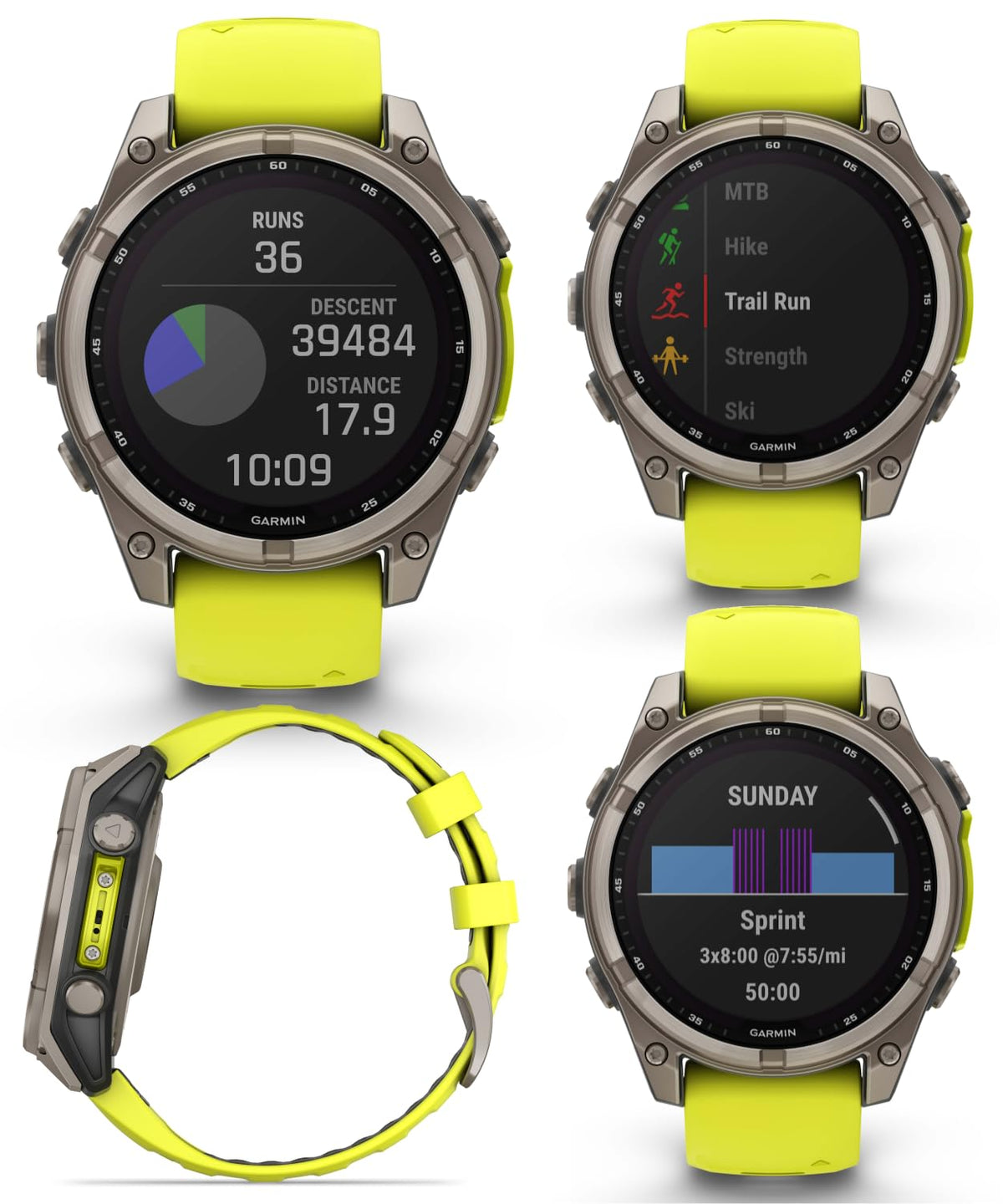 Be Limitless. The Fenix 8 Multisport Gps Smartwatch Is Built For Serious Athletes And Outdoor Adventurers Who Want To Push Beyond Their Limits. It Features A 1.3 Solar Charged Display With Scratch-Resistant Sapphire Lens, Durable Titanium Bezel And Powerful Built-In Led Flashlight For After-Dark Visibility. A Built-In Speaker And Mic Enable You To Make And Take Calls From Your Wrist When Your Watch Is Paired To Your Smartphone. Power Up Your Bodys Performance, Endurance And Resistance To Injury With Targeted Strength Training Plans And A Full Range Of Sport-Specific Workouts. Performance Insights Help Manage Your Exertion And Build Stamina, While Training Readiness Features Show How Much Recovery Time You Need Between Workouts, Based On 24/7 Health And Wellness Monitoring Of Heart Rate, Respiration, Stress, Sleep And More (Data Presented Is Intended To Be A Close Estimation Of Metrics Tracked). Take To The Trails With Built-In Abc Sensors And Preloaded Topoactive Maps. The Dynamic Round-Trip Routing Feature Helps Simplify The Planning Of Your Runs Or Rides - Letting You Set Your Target Distance And Receive Turn-By-Turn Directions That Adjust To Get You Back To Your Start On Schedule. Enjoy Extended Off-Grid Adventures With Solar Power Providing Up To 92 Hours Of Battery Life In Gps Mode (Assumes Continuous Use For Entire Period In 50,000 Lux Conditions). Plus, A 40-Meter Dive Rating And Leakproof Metal Buttons Let You Reach New Depths Of Adventure. Additional Features Include Music Storage, Garmin Pay Contactless Payments (With A Supported Country And Payment Network), Smart Notifications (Compatible Smartphone Required) And More.