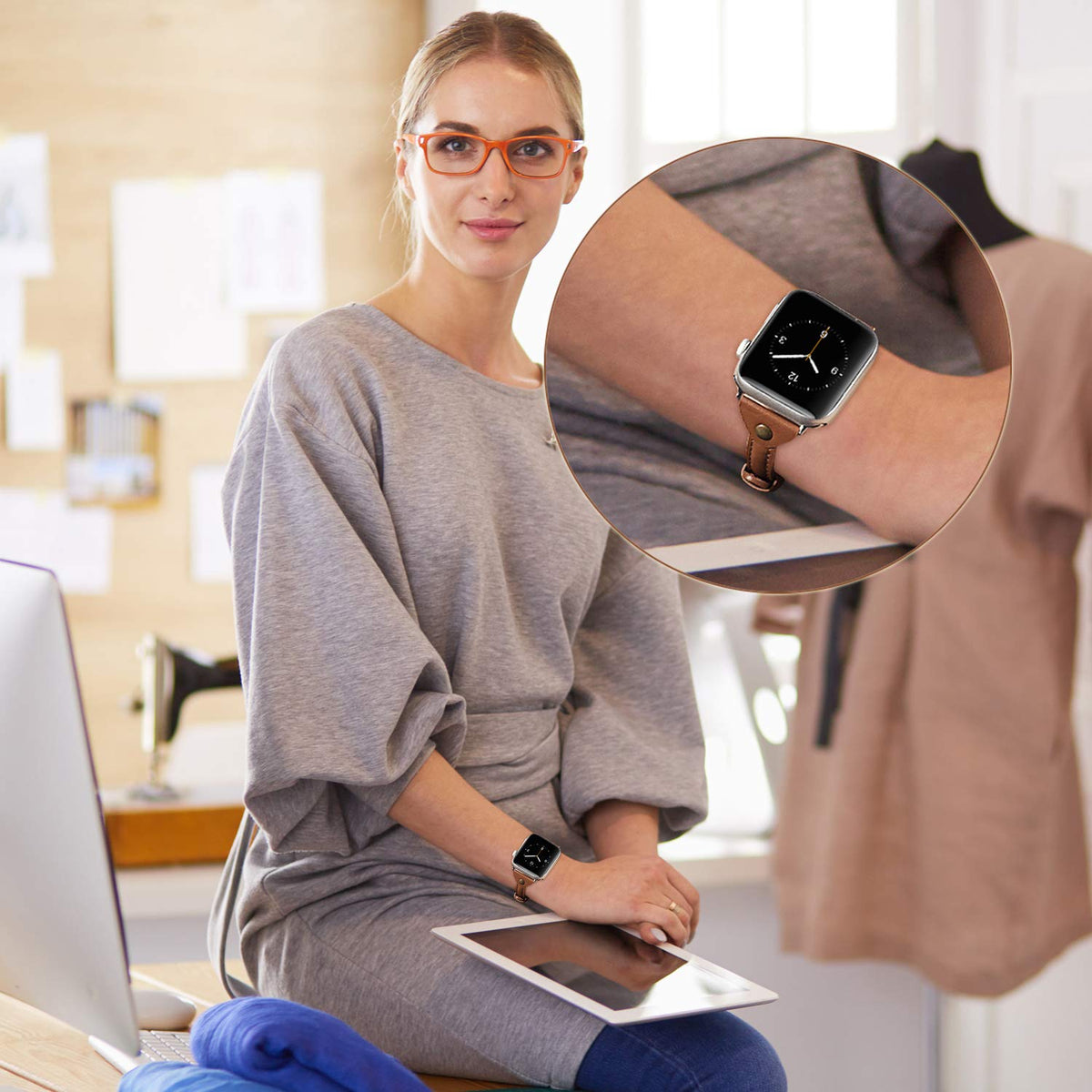 Wearlizer Brown Leather Compatible With Apple Watch Slim Leather Band 42Mm 44Mm 45Mm 49Mm(Ultra) For Women Men Strap Wristband R