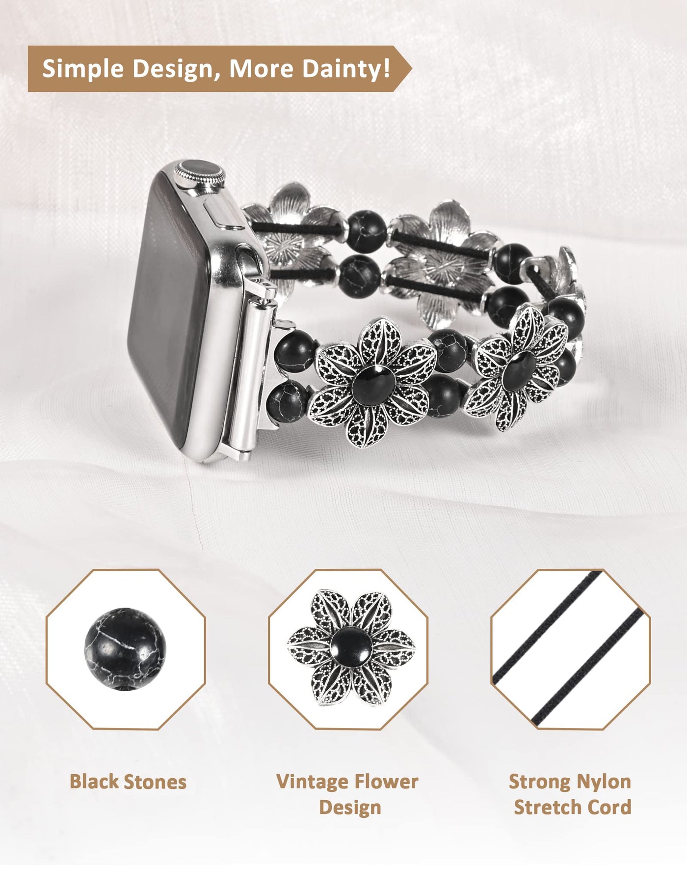 Features: Wearlizer Compatible With Apple Watch Bands Are Made Of High-Quality Metal And Premium Turquoise Pearls, Durable And Lightweight, Skin-Friendly And Breathable, Feels Comfortable On Your Wrist Boho Turquoise Style Design Bands Make Your Watch Looks More Stylish, Elegant And Decent The Fashion Style And Various Colors Perfectly Fit Any Occasion For Women, Show Off Your Playful Side With This Adjustable Braided Band If Get Dirty During The Daily Use, You Can Wash The Band To Keep It Clean, Notice: Hand Washing Is Recommended, Not Machine Washing This Iwacth Band Havs 4 Size, Xs S M L, Is Stretchable For Easy Wearing And Taking Off Please Check The Size Carefully Before Ordering Occasions: Thanksgiving Day, Christmas, New Year, Wedding, Anniversary, Birthday, Valentines Day, Mothers Day, Etc Package Includes: - 1 X Wearlizer Bands Compatible With Apple Watch 38Mm 40Mm 41Mm 42Mm 44Mm 45Mm 49Mm