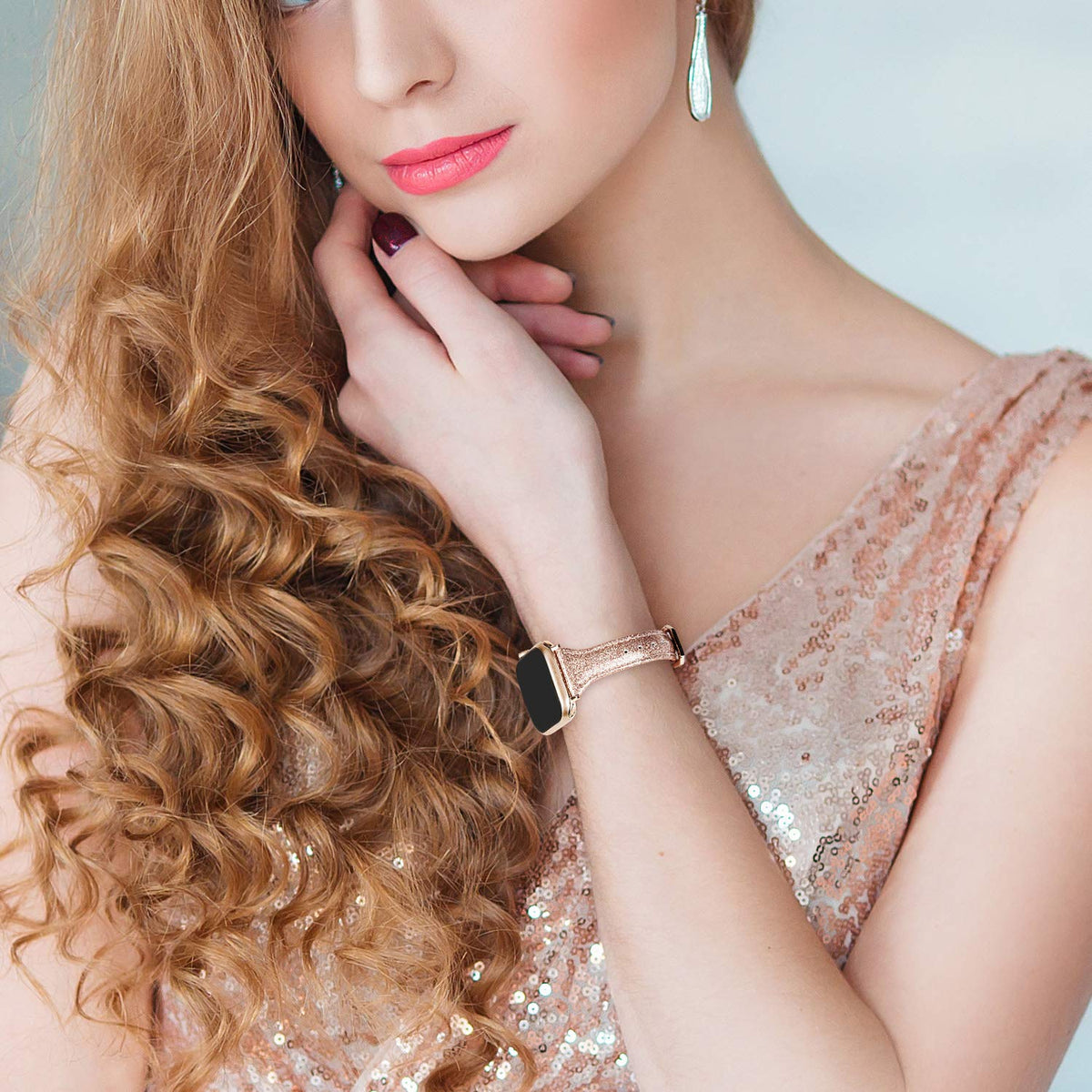 Warranty 12 Months No-Hassle Warranty Note The Iwatch 38Mm40Mm42Mm44Mm Is Not Included Width For Band: 06Inch15Mm Features 1 Made Of Top Genuine Leather With Designed Soft Glitter Material, Fashionable And Elegant Suitable For Most Occasions, Such As Sport, Party, Hiking, Shopping, Climbing, Date, Etc 2 Strong Stainless Steel Metal Clasp Ensure The Watch Stability, Very Easy To Install Or Remove Convenient To Adjust The Size Due To The Multiple Alternative Holes Package Includes 1 X Wearlizer Iwatch Band