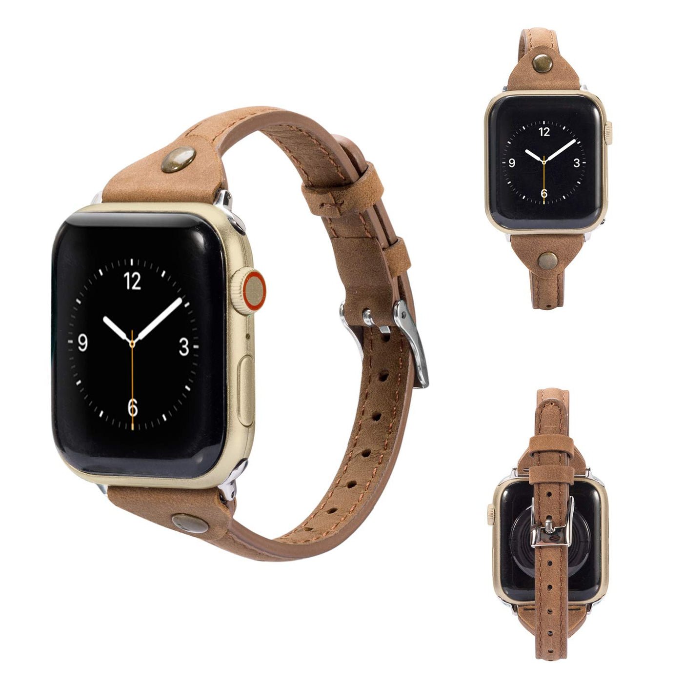 Wearlizer Scrub Deep Brown Leather Compatible With Apple Watch Slim Leather Band 42Mm 44Mm 45Mm 49Mm(Ultra) For Women Men Strap