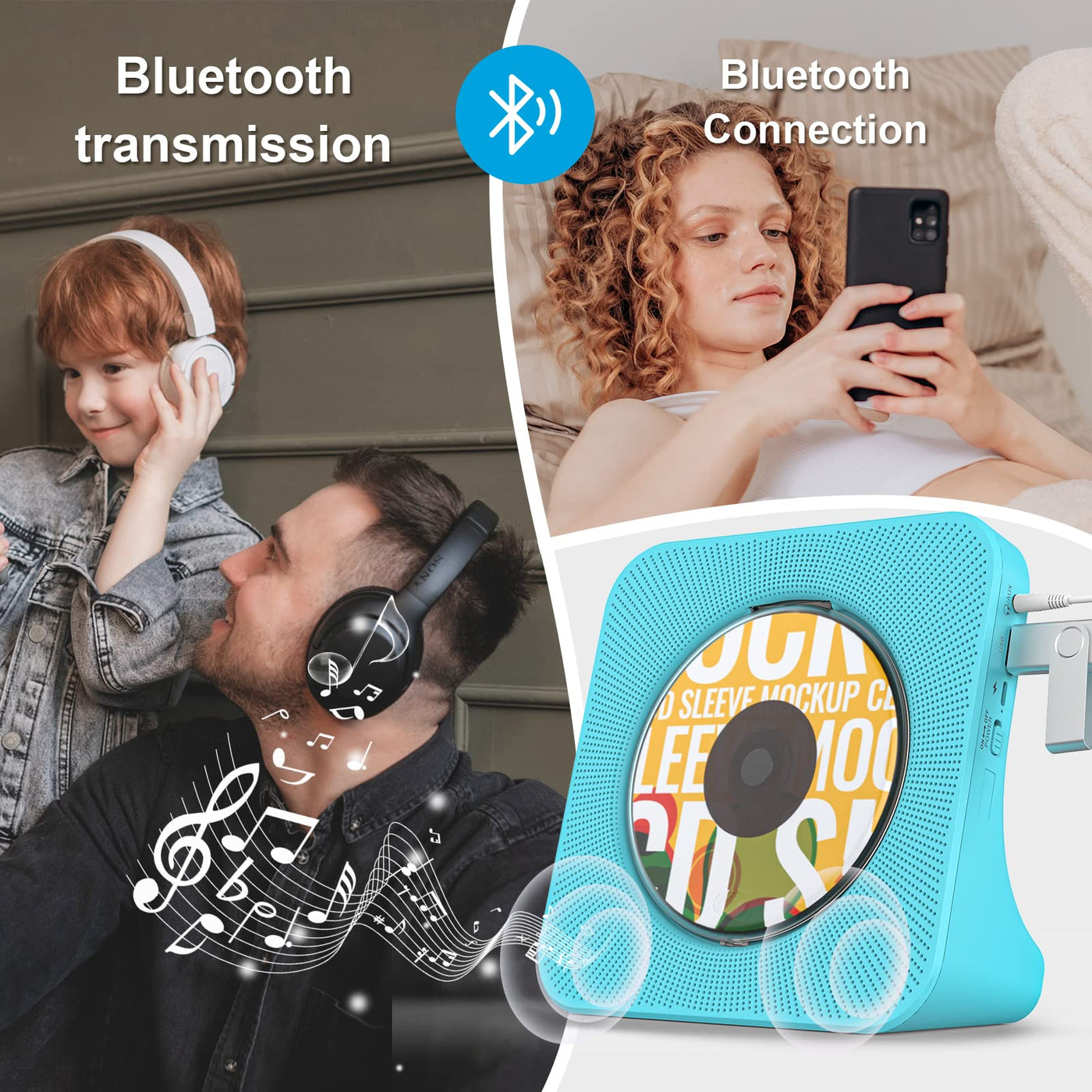 Weeuus Cd Player Portable With Bluetooth,Desktop Cd Player With Remote Control,Kids,Kpop,Dual Stereo Speaker,Dust Cover, Fm Radi