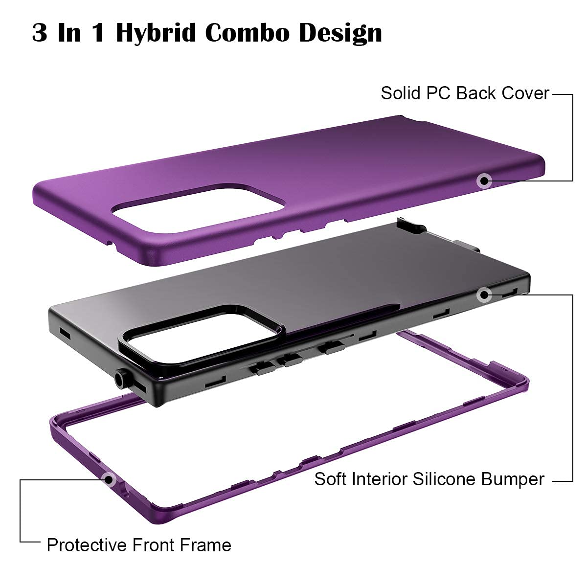 Q: What type of protection does this case provide?A: This case features a three-layer hybrid design that includes a hard Polycarbonate outer cover and a TPU bumper, offering heavy-duty protection against shocks, scratches, and drops.