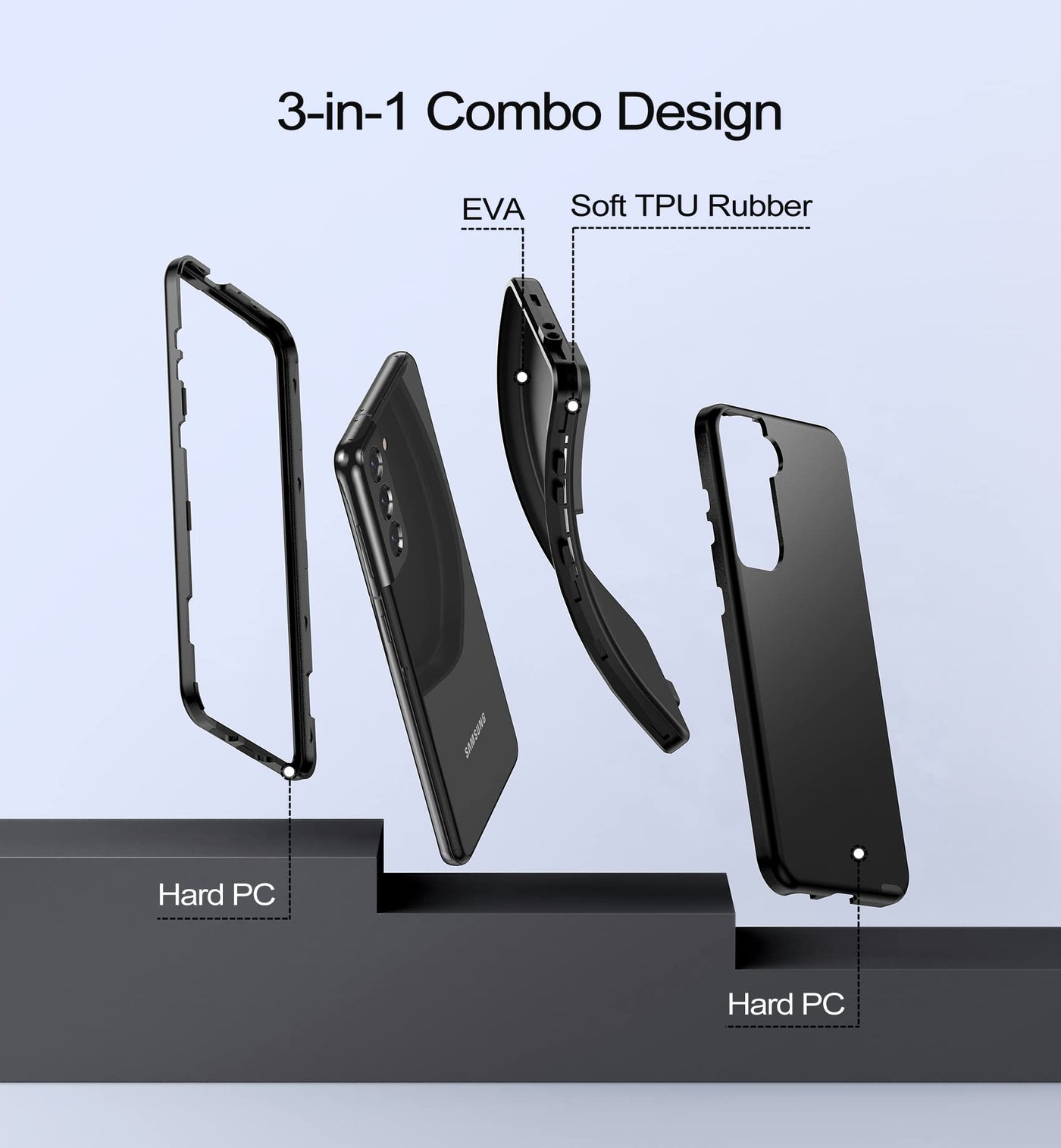 Q: What kind of protection does the WeLoveCase provide for my Galaxy S21?A: The WeLoveCase features a three-layer design that includes a sturdy TPU rubber inner layer, a hard PC outer layer, and raised edges for screen and camera protection, ensuring comprehensive protection against shocks and bumps.