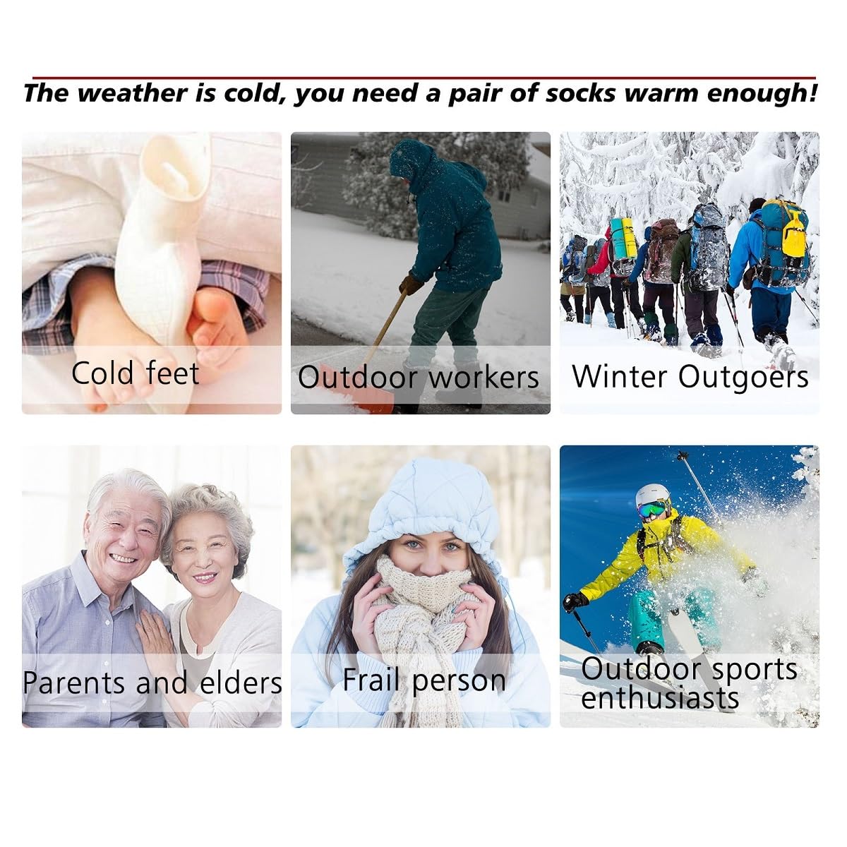 Q: Can I use these socks for outdoor sports?A: Yes, these socks are ideal for outdoor activities such as skiing, snowboarding, hiking, and jogging. They provide warmth and comfort during cold-weather sports.