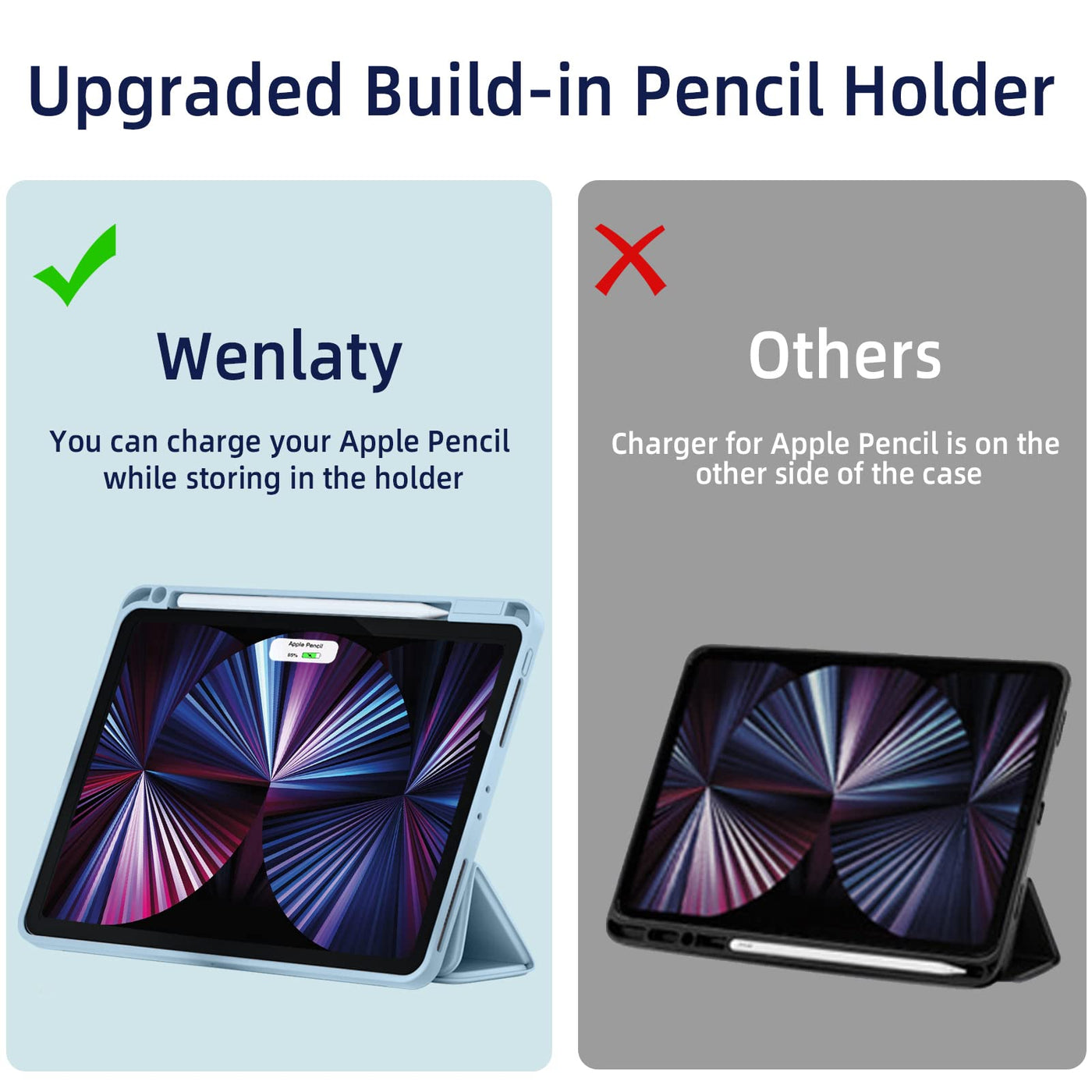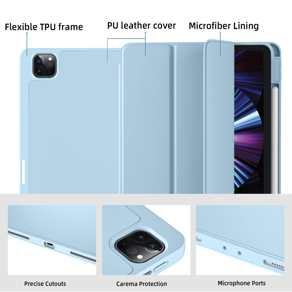 Compatiility: Wenlaty Case Compatible With: Ipad Pro 11 Inch 4Th Generation Case 2022 Ipad Pro 11 Inch 3Rd Generation Case 2021 Ipad Pro 11 Inch&Nbsp;2Nd Generation Case 2020 Ipad Pro 11 Inch Case Ipad Pro 11 Case Ipad 11 Pro Case Ipad Pro Case 11 Inch 11 Inch Ipad Pro Case Ipad Pro 11 Inch Cover Model Numbers:&Nbsp;A2759/A2435/A2761/A2762,&Nbsp;A2377/A2459/A2301/A2460,&Nbsp;A2228/A2068/A2230/A2231 Material: Durable Front Pu Leather And Back Soft Tpu,Slim And Lightweight Design With Excellent Craftsmanship And Feel, Prevents The Ipad From Scratching And Bumping. Multiple Colors: Eight Colors For You To Choose, Black, Navy Blue, Sky Blue, Rose Pink, Matcha Green, Blue Gray, Pine Green, Lavender Apple Pencil Holder The Case Compatible With Ipad Pro 11 Inch 2022/2021/2020 Built-In Apple Pencil Holder, Support Apple Pencil 2Nd Generation Wireless Charging And Attachment Function, Conveniently Place And Remove Your Pencil. Auto Wake/Sleep Built-In Magnetic Stripe Provides Auto Wake/Sleep Feature. It Is Good Enough To Reduce The Loss Of Battery And Extend The Standby Time. Precise Cutouts Allow Full Access To All Controls And All Features (Buttons, Speakers, Cameras). Adjustable Stand Cover Stable Tri-Fold Stand Design Provides Two Different Angles For Viewing And Typing, Convenient For Dailylife And Work.