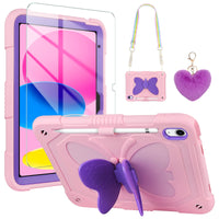 Wesadn Butterfly Tablet Case For Ipad 10Th Generation 10.9 Inch Model: Compatible With Apple Ipad 10Th Generation 2022 10.9 Inch. Color: Pink Purple Feature: 1. Colorful Pattern And Butterfly Kickstand Is Personalized And Unique For Eyes Catching, Comes With A Heart Plush Keychain, Very Suitable As A Girls Boys Kids'S Holiday Present. 2. This For Ipad 10Th Generation Case Comes With A Screen Protector Made Of Hardness Tempered Glass, Protects The Screen From Bumps And Scratches. 3. Dual Layer Drop Proof Design Is Rugged Provides A Strong Protection For Your Tablet. 4. Built-In Pencil Holder Is Convenient To Put The Pencil With The Tablet Together Without Fear Of Losing The Pencil. 5. Built-In Sturdy Butterfly Kickstand Is Useful Which Can Be Used As Horizontal Stand, More Convenient To Read, Type, Browse Website. 6. Precise Cutout, Easy And Quick Installation And Removal, No Need To Remove This Case During Charging. Package Content: Butterfly Heavy Duty Case For Ipad 10Th Generation 2022 10.9'' Screen Protector Shoulder Strap Heart Plush Keychain