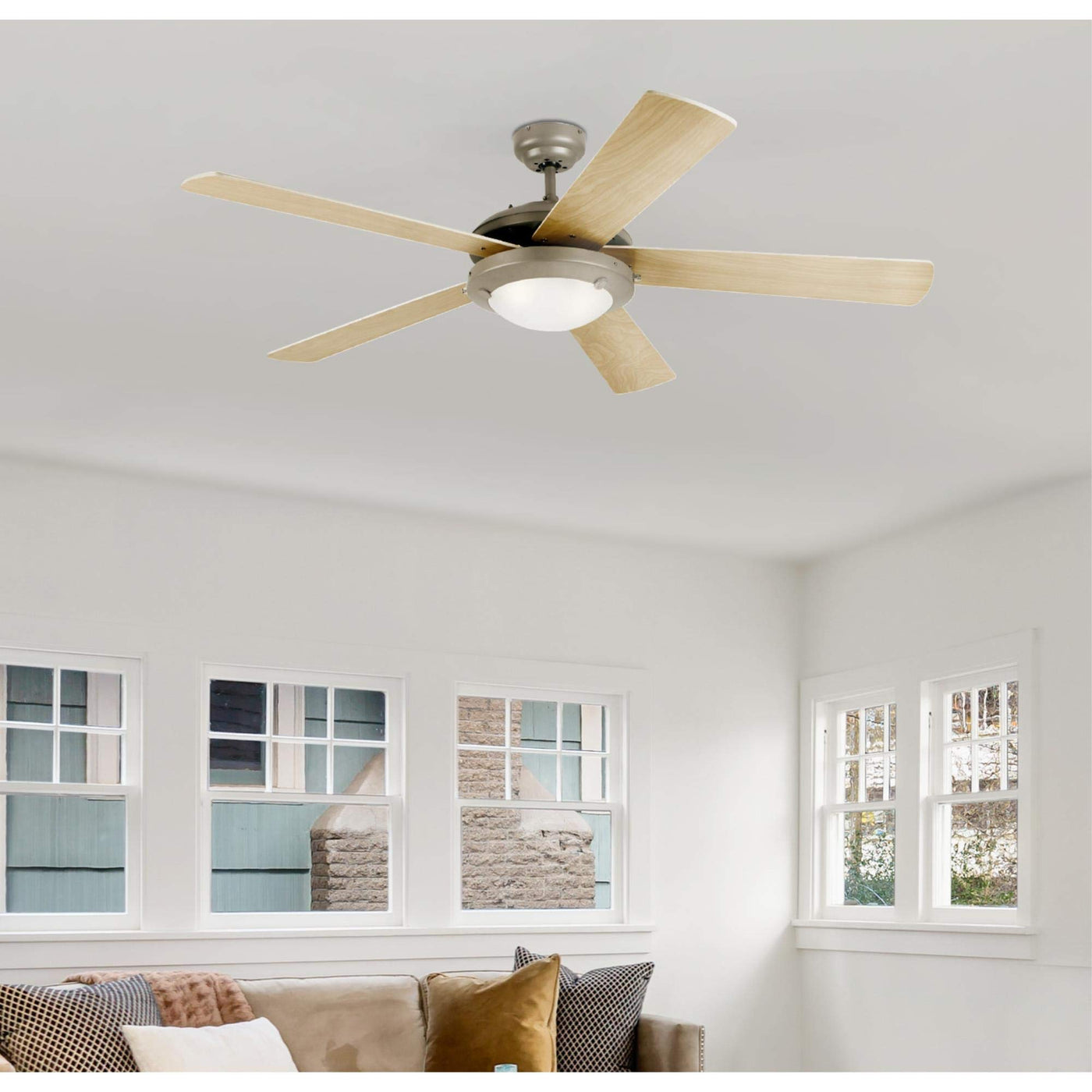 The Westinghouse Comet Brushed Pewter Ceiling Fan With Light Features Led Technology For Enhanced Energy-Efficiency. The Versatile 52 Inch Ceiling Fan Offers Classic Appeal, With Reversible Blades In Two Finishes, Light Maple And White. This Led Ceiling Fan Design Is Ideal For Any Large Room From Bedrooms To Playrooms. Product Reference Number 72341.