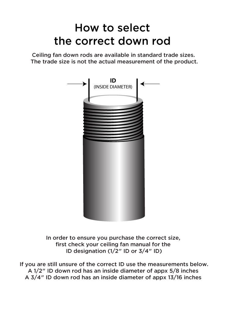 Product Descriptionideal For 11-Foot Ceilings, This Westinghouse 34-Inch Id By 24-Inch Extension Down Rod Helps Maximize Your Ceiling Fans Cooling Benefits By Providing The Proper Height It Features A White Finish For A Clean Complement To Your Existing Ceiling Fan Tapered Threaded Ends Ensure A Deeper Connection And Stronger Bond For Maximum Durabilitythe Extension Down Rod Measures 24 Inches Long By 34 Inches Id, And Can Be Used With Westinghouse Or Other Ceiling Fans That Require A 34-Inch Id Ceiling Fan Extension Down Rodfor Optimum Performance And Safety, Ceiling Fan Blades Should Be At Least 7 Feet From The Floor But No Higher Than 8 To 9 Feet In Order To Best Cool A Room For Ceilings 9 Feet And Higher, An Extension Down Rod Is Required To Bring The Ceiling Fan Down To The Proper Height Above The Floor Product Reference Number 77254From The Manufacturerthis Westinghouse Down Rod Is Great For Any Home To Ensure Safety When Using These Ceiling Fan Blades Should Be At Least 7 Feet From The Floor But No Higher Than 8 To 9 Feet In Order To Best Cool A Room