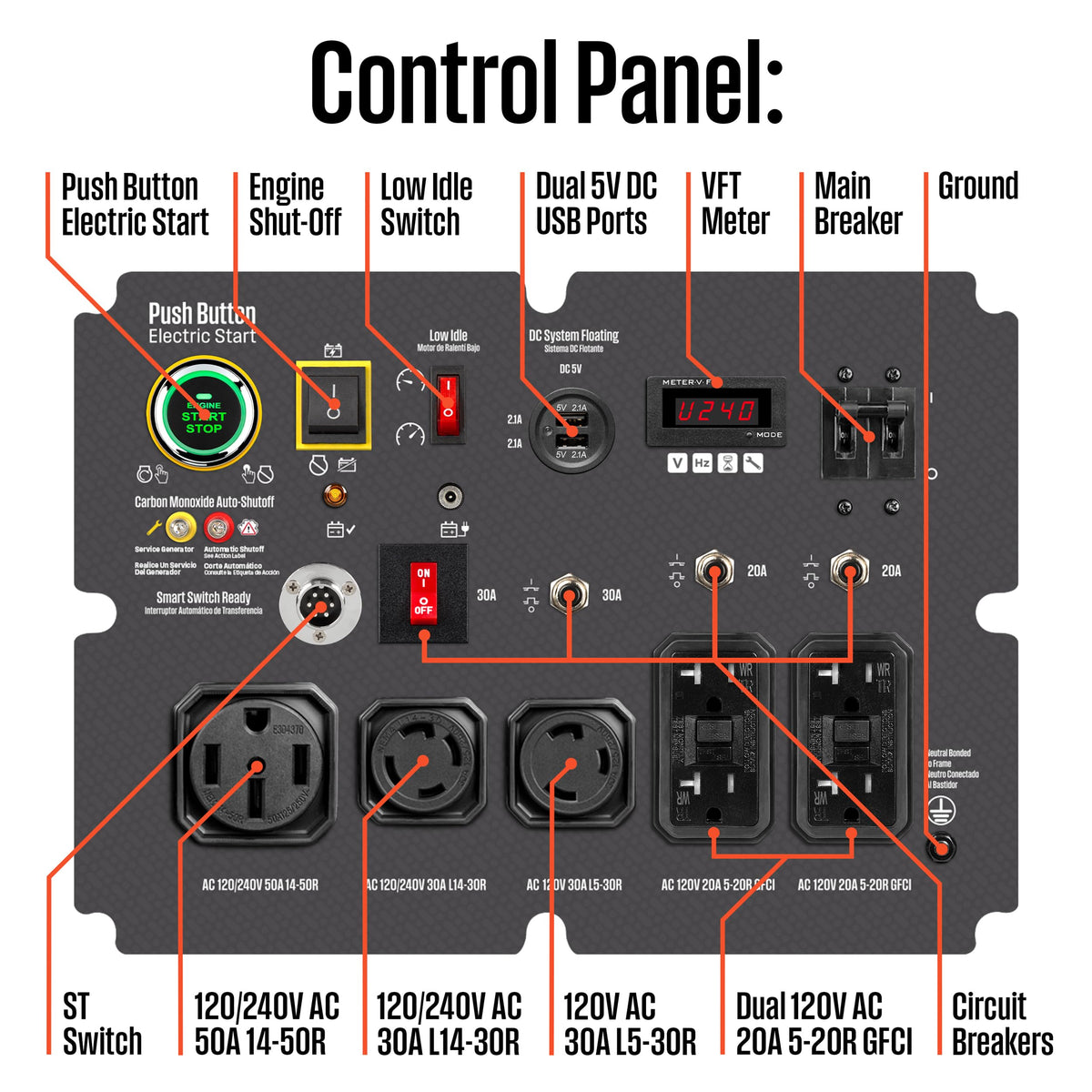 For Your Toughest Power Needs, The Westinghouse Wgen14500C Portable Generator Is An Ultra Duty Generator Engineered For Strength. With 18,000 Peak Watts And 14,500 Running Watts, The Wgen14500C Is Built With A Brawny 713Cc V-Twin Ohv Westinghouse Engine To Yield Up To 11 Hours Of Run Time On A Hefty 10.5 Gallon (40 L) Gas Tank With A Built-In Fuel Gauge. It Features Push-Button Electric Start To Make Starting The Wgen14500C Effortless While The Remote Start Key Fob Offers Added Ease From A Distance. Transfer Switch Ready L14-30R And Larger 14-50R Outlets Have The Muscle To Power All Your Major Appliances Like Your Air Conditioner, Refrigerator, And Sump Pump As Well As Lights Or Entertainment Centers At The Same Time With A Single Cord Hookup. It'S Easy To Charge Sensitive Electronics Because The Wgen14500C Produces Less Than 5% Thd, Allowing You To Plug Straight Into Its Intuitive Control Panel. Vft Data Center Displays Real-Time Performance Information To Keep You Up To Date With Regular Maintenance. Constructed With A Rugged Steel Frame With Lift Brackets, The Wgen14500C Is Conveniently Portable With An Included Set Of Heavy-Duty Never-Flat Wheels And Handles To Have Your House, Travel Trailer, Or Job Site Powered In Seconds. The Wgen14500C Is Complete With A 3-Year Limited Warranty And Lifetime Technical Support Backed By Our Nationwide Customer Service And Support Network.