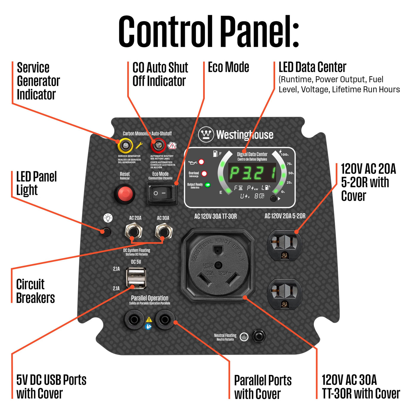The Westinghouse Igen4000Cv Portable Inverter Generator Is A Premium Power Solution To Meet Your Portable Power Needs Whether You'Re Camping Or On The Go. With A Tt-30R Rv Ready Outlet, Two 20A Household Outlets, And 2 Built-In Usb Ports, This Generator Is Ideal For Recreational Activities Or For Emergency Backup. It'S Engineered For Maximum Fuel Efficiency With Variable Engine Speed To Produce Only The Power You Need At Any Given Time, Running Up To 7 Hours On A 1.69-Gallon Gas Tank. Conveniently Built With An Led Data Center With An Automatic Rotating Digital Display To Keep You Up To Date With Real-Time Information. At Less Than 3% Thd, The Igen4000Cv Is Perfect For Running Sensitive Electronics Like Lcd/Plasma Televisions, Laptops, Tablets, Or Mobile Devices That Require Clean, Stable Power. It Features A Lightweight, Compact Design With Never-Flat Wheels And An Extendable Suitcase-Style Handle, Making This Model Effortlessly More Portable Than Traditional Generators. The Igen4000Cv Features Automatic Low Oil And Carbon Monoxide (Co) Shutdown, Complete With A 3-Year Limited Warranty And Lifetime Technical Support, Backed By Our Nationwide Westinghouse Service Network.