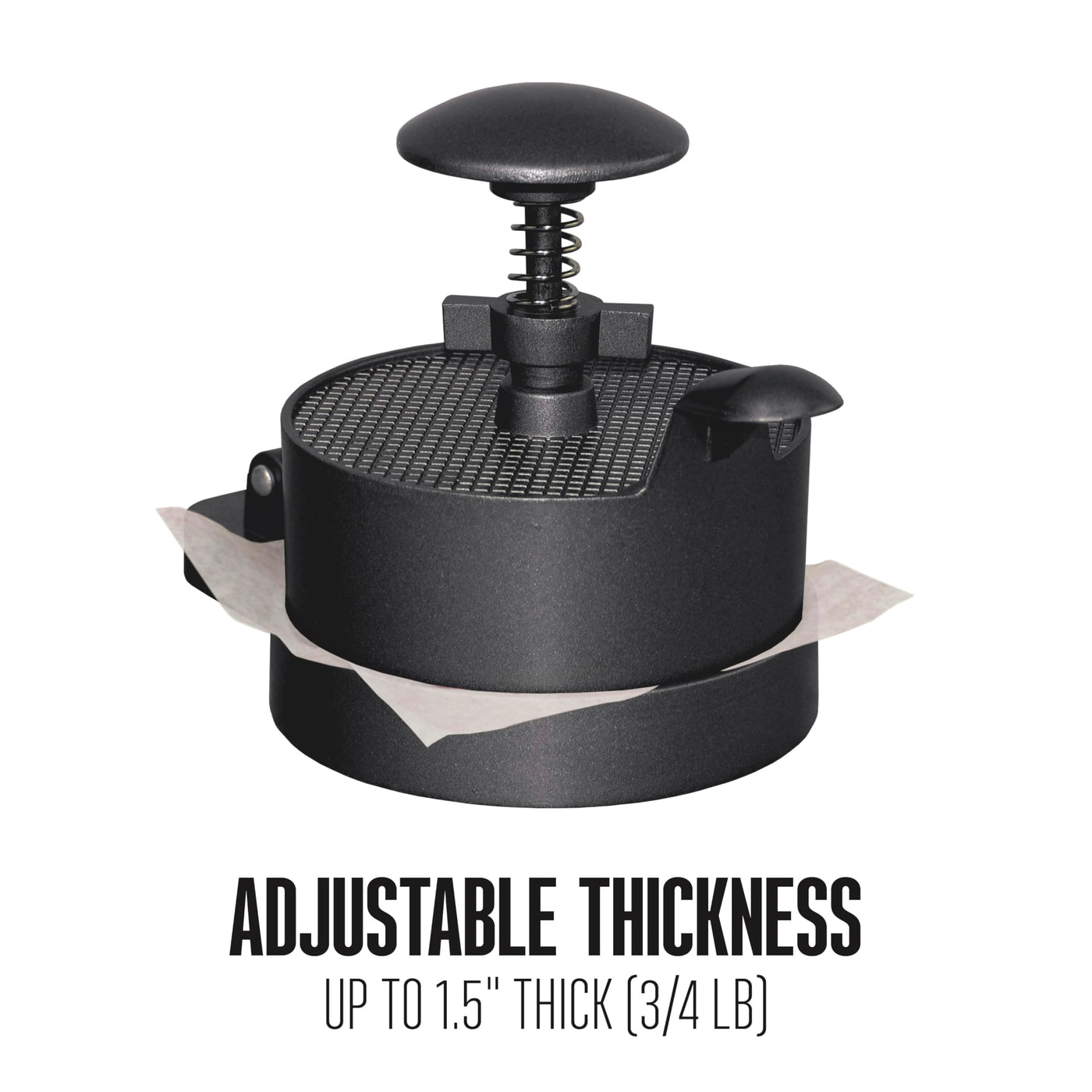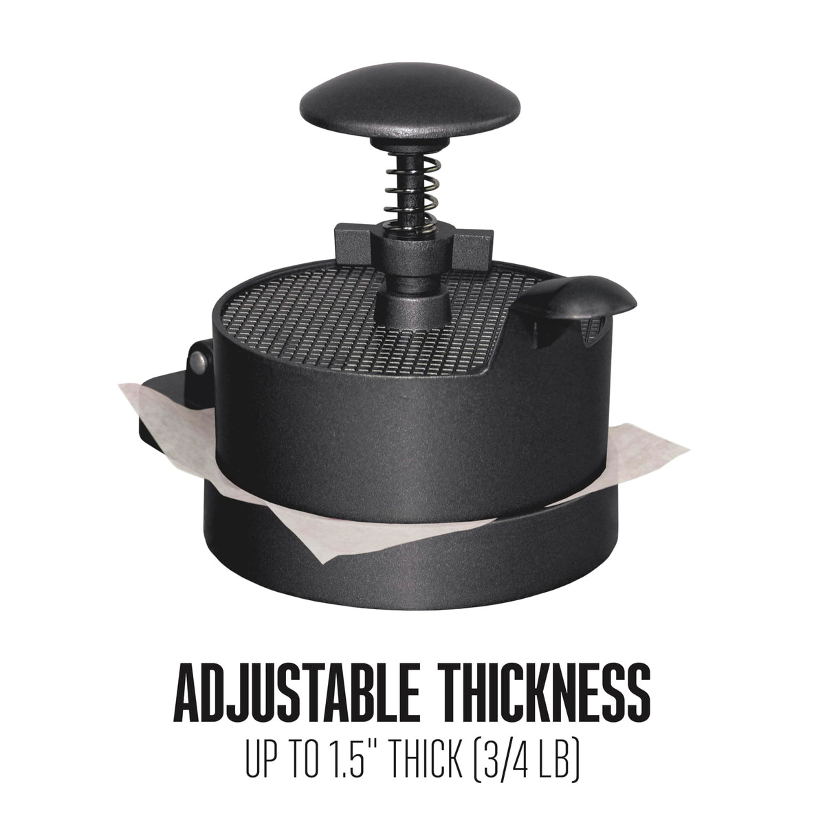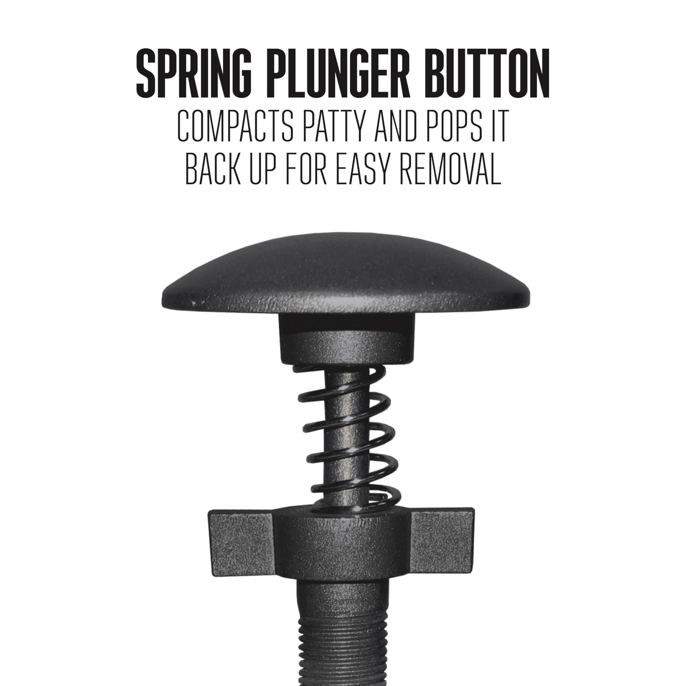 Exclusive Spring Plunger Makes Patty Pressing & Removal Effortless. Also Great For Making Stuffed Burgers, Crab Cakes & Sausage Patties. Spring Plunger For Easy Patty Removal. Adjustable Patty Thickness From �' To 1 �'. Patties Measure 4 �' In Diameter. Nonstick Coating. Cast Aluminum. Wipes Clean.