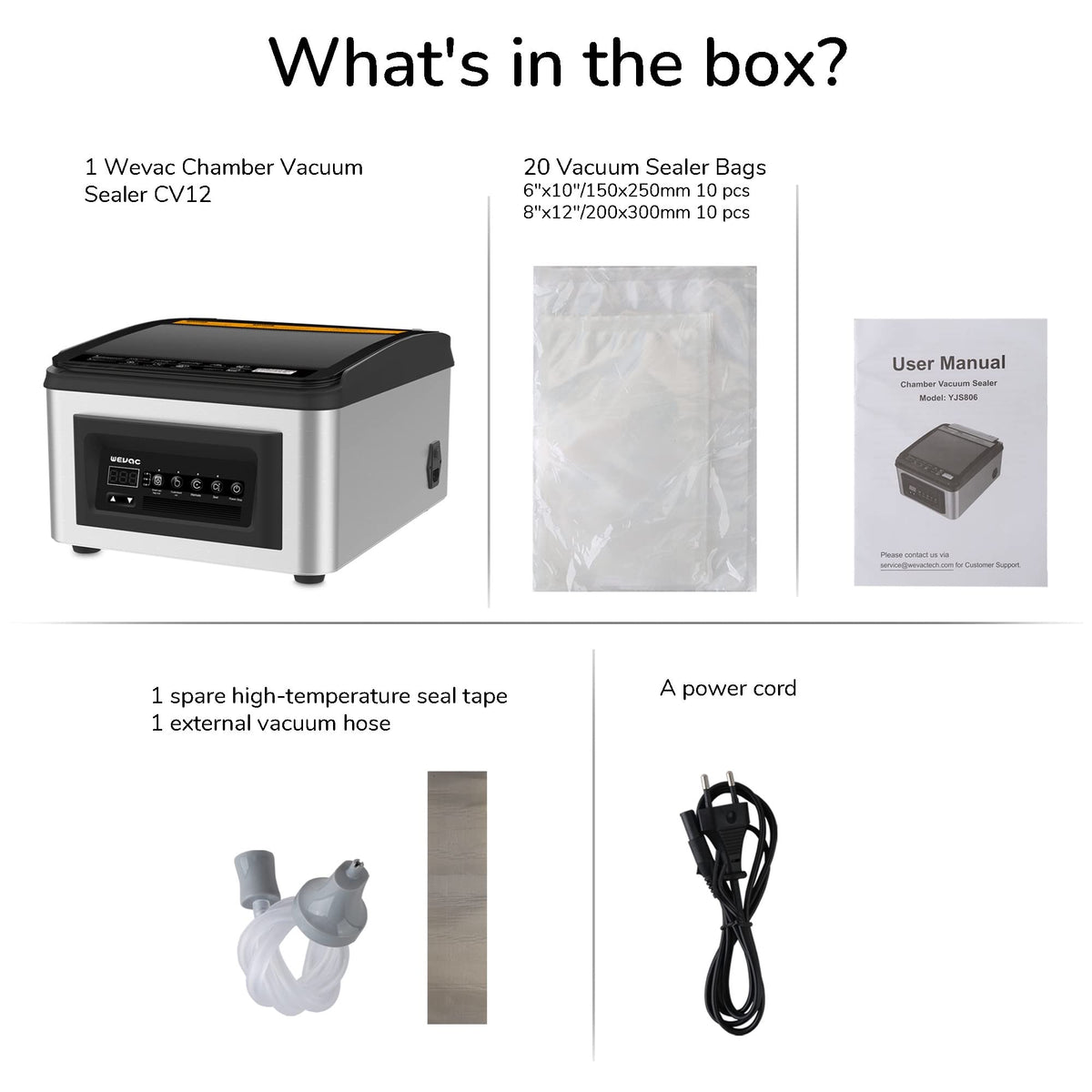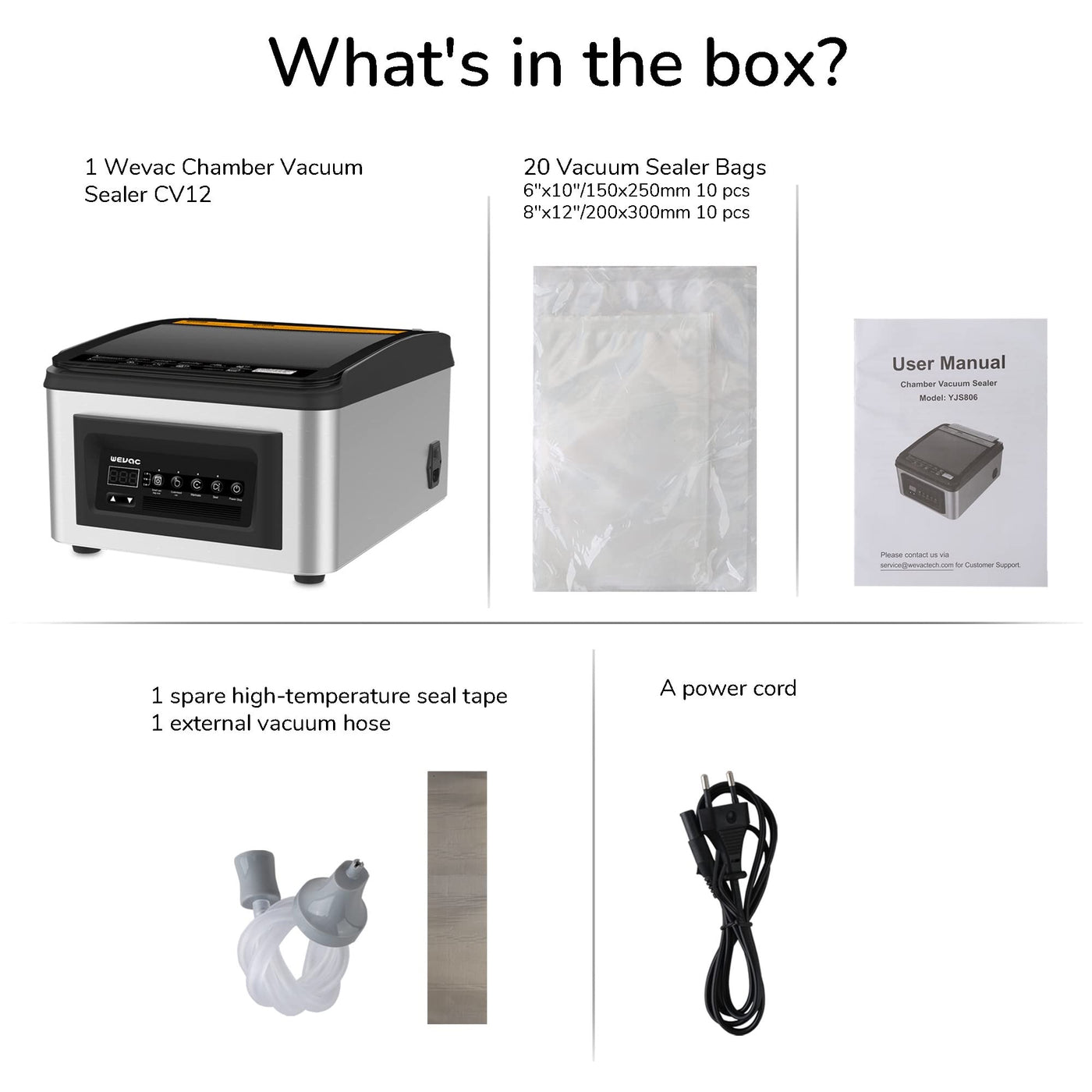 Please Contact Our Customer Support Via: Service@Wevactech.Com. Please Do Not Remove The Sealing Tape On The Seal Bar! Set The Sealing Time To 6 Seconds If You Find The First Seal Not Tight Enough. Please Contact Our Customer Support Via: Service@Wevactech.Com. The Voltage Of The Machine Is 120V.